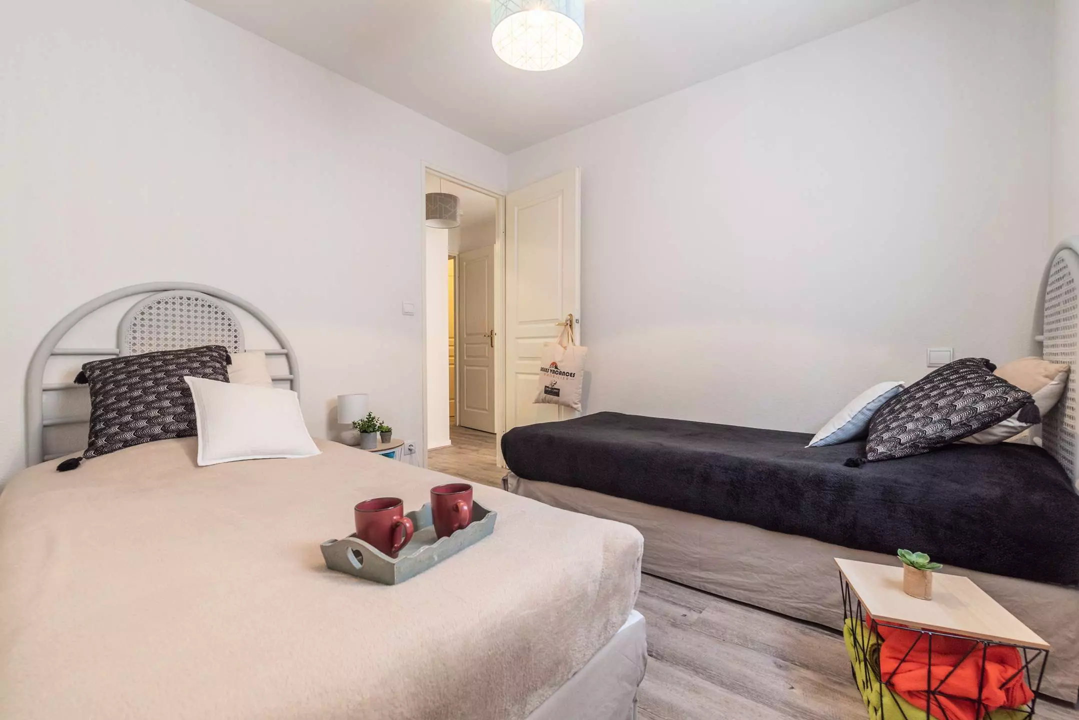 A bedroom with 2 single beds (90 cm)