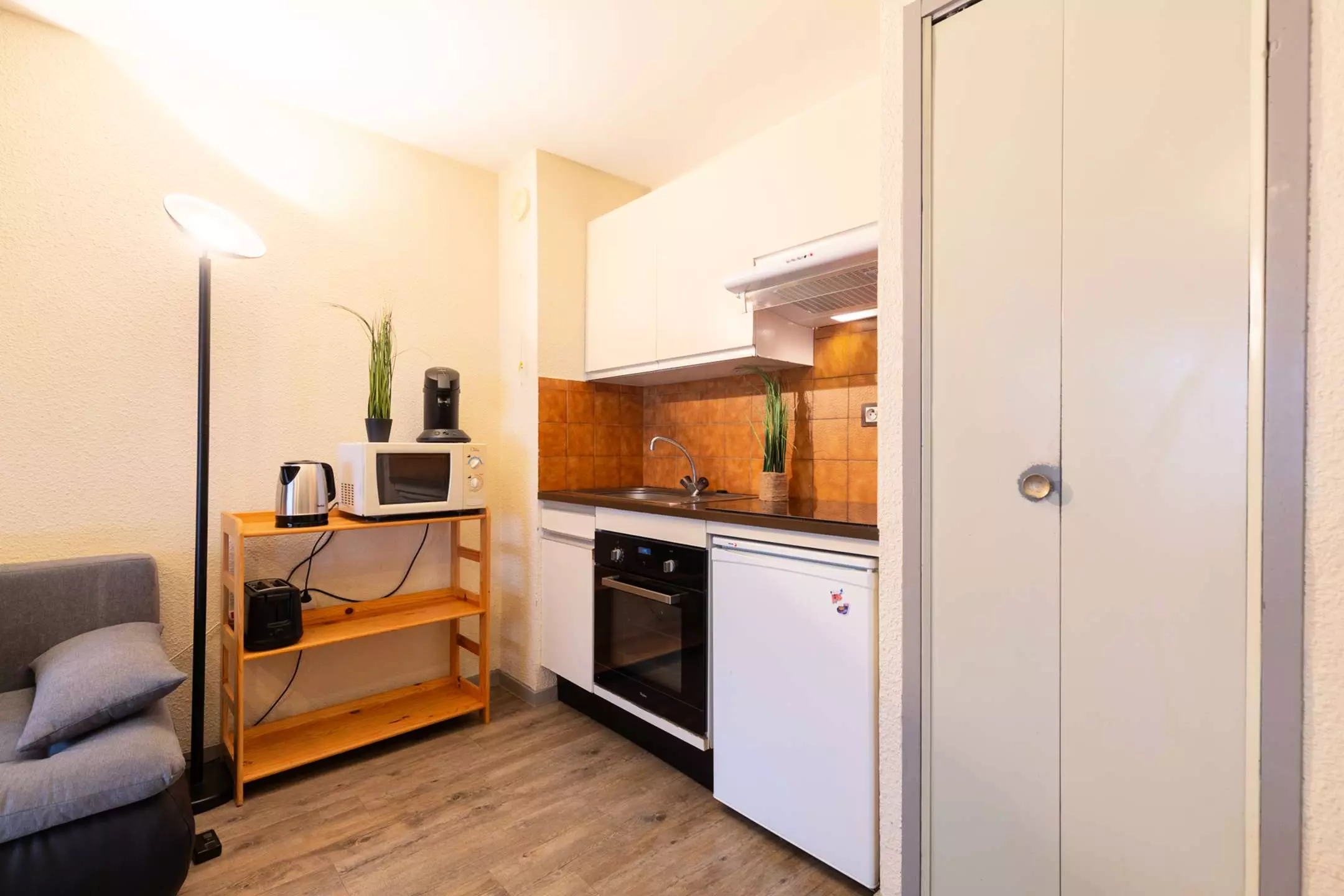 Regarding the facilities of this accommodation, you will find on the 1st level a large living room opening onto the kitchenette and the sunny balcony as it faces due south.