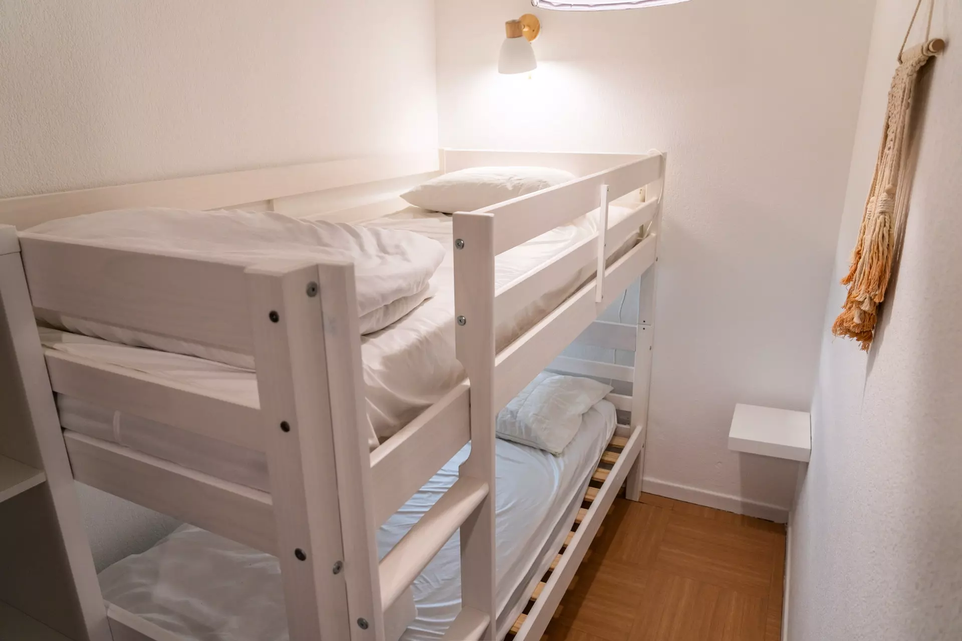 On the sleeping side, you will have a bedroom with a double bed 140 x 190 cm; a sleeping area with two single bunk beds 90 x 190 cm. The sleeping areas are all equipped with quality bedding, storage and a wall-mounted television in the double bedroom.
