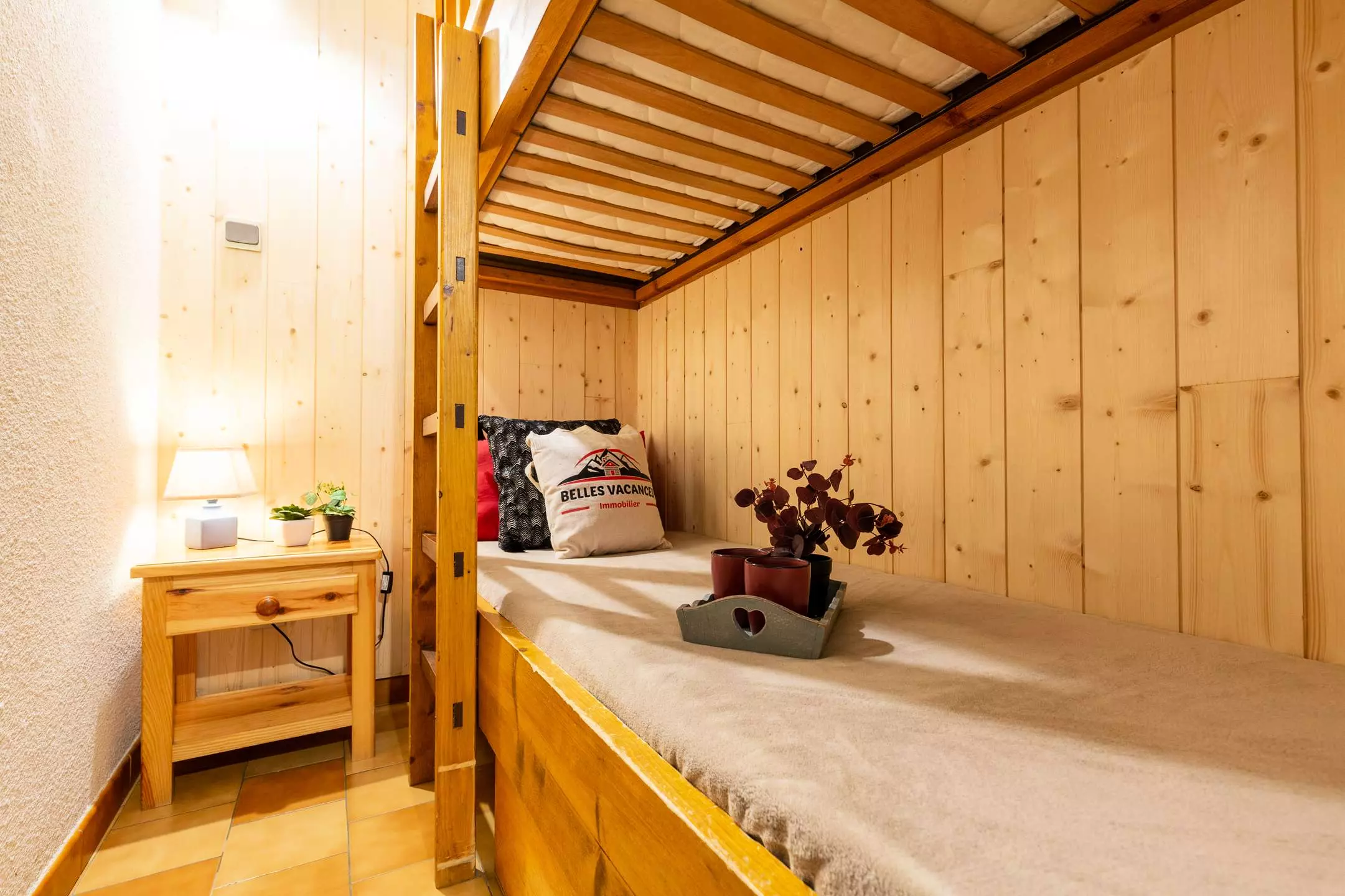1 bedroom with 1 double bed, 1 sleeping area with 2 single bunk beds,