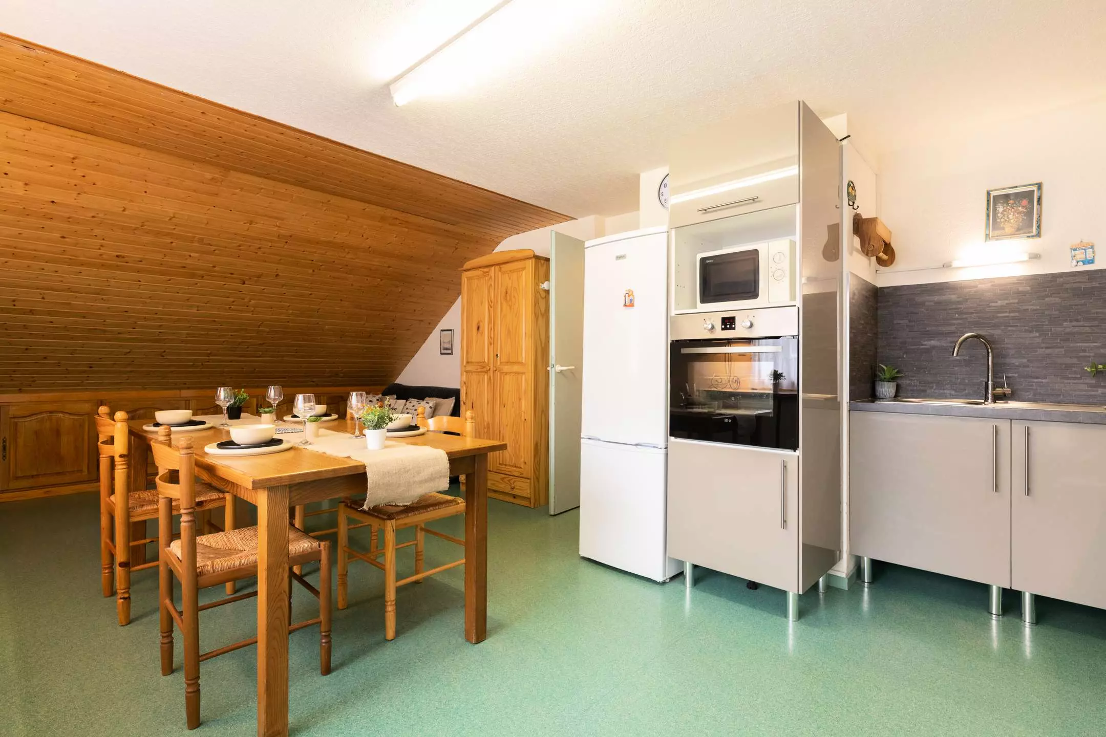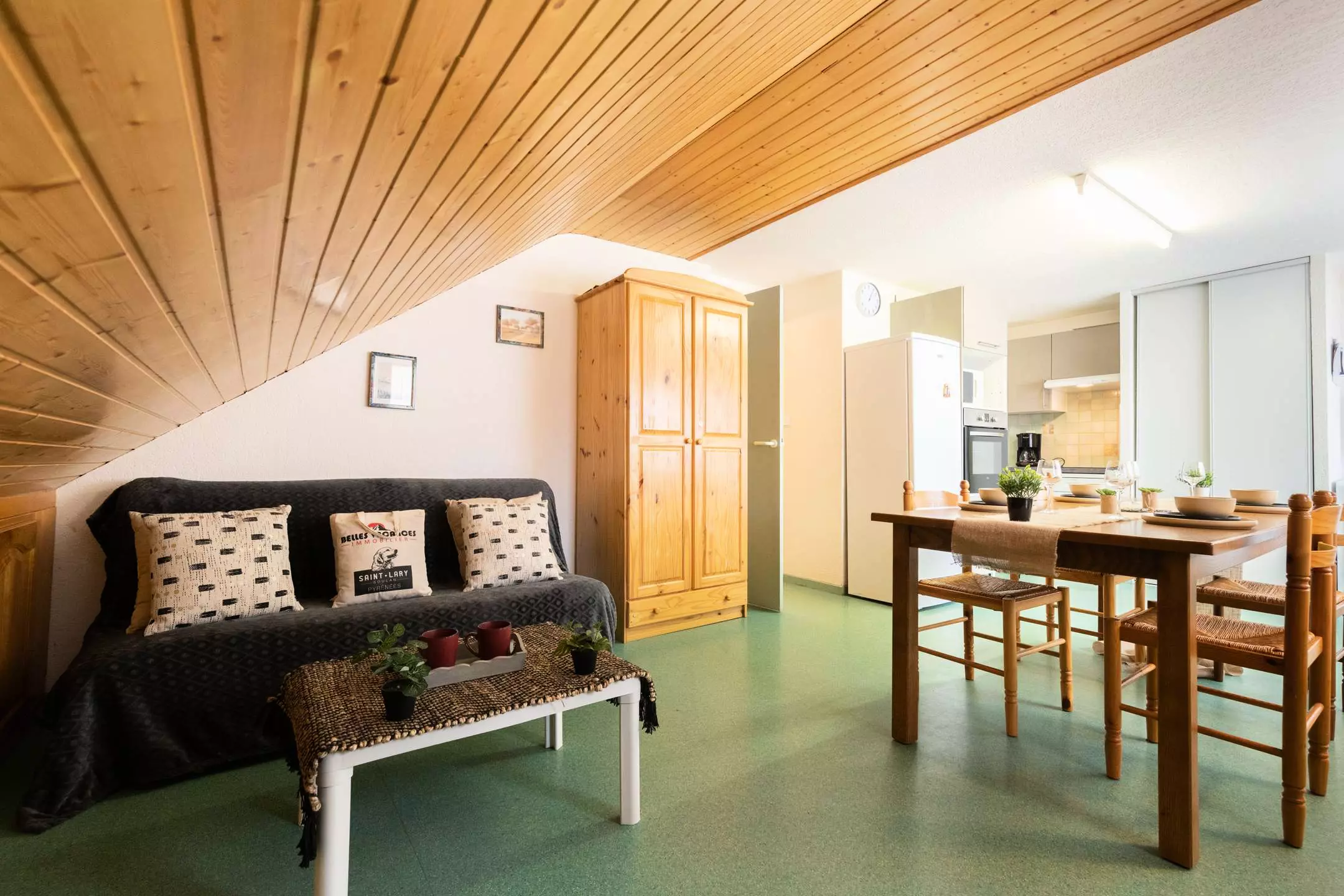 Finally you enter the living room/lounge opening onto the kitchenette and the south-facing balcony with its lovely unobstructed view of the Pla d'Adet.