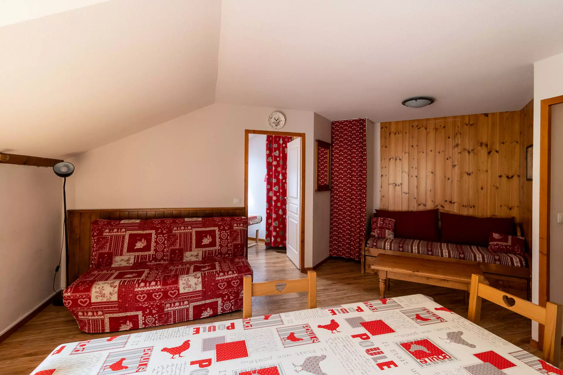 It has a bedroom with two single beds 80 x 90 cm and two double sofa beds in the living room, a bathroom with bathtub for a moment of relaxation, ideal after a day of skiing or walking.