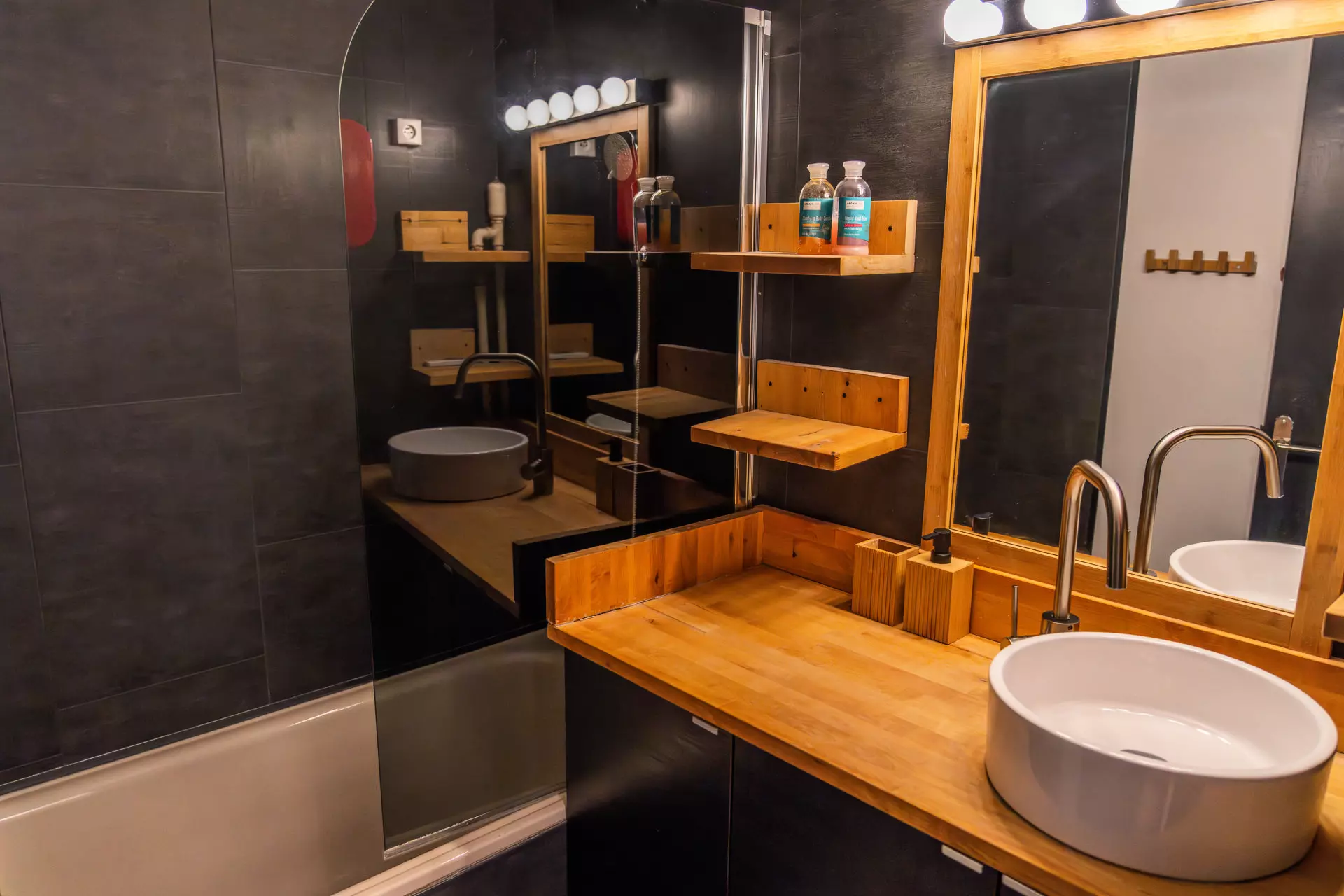 The southwest-facing balcony will allow you to sunbathe or have breakfast with the birds singing, while the decor will take you directly into a cozy, mountain atmosphere to feel at ease!