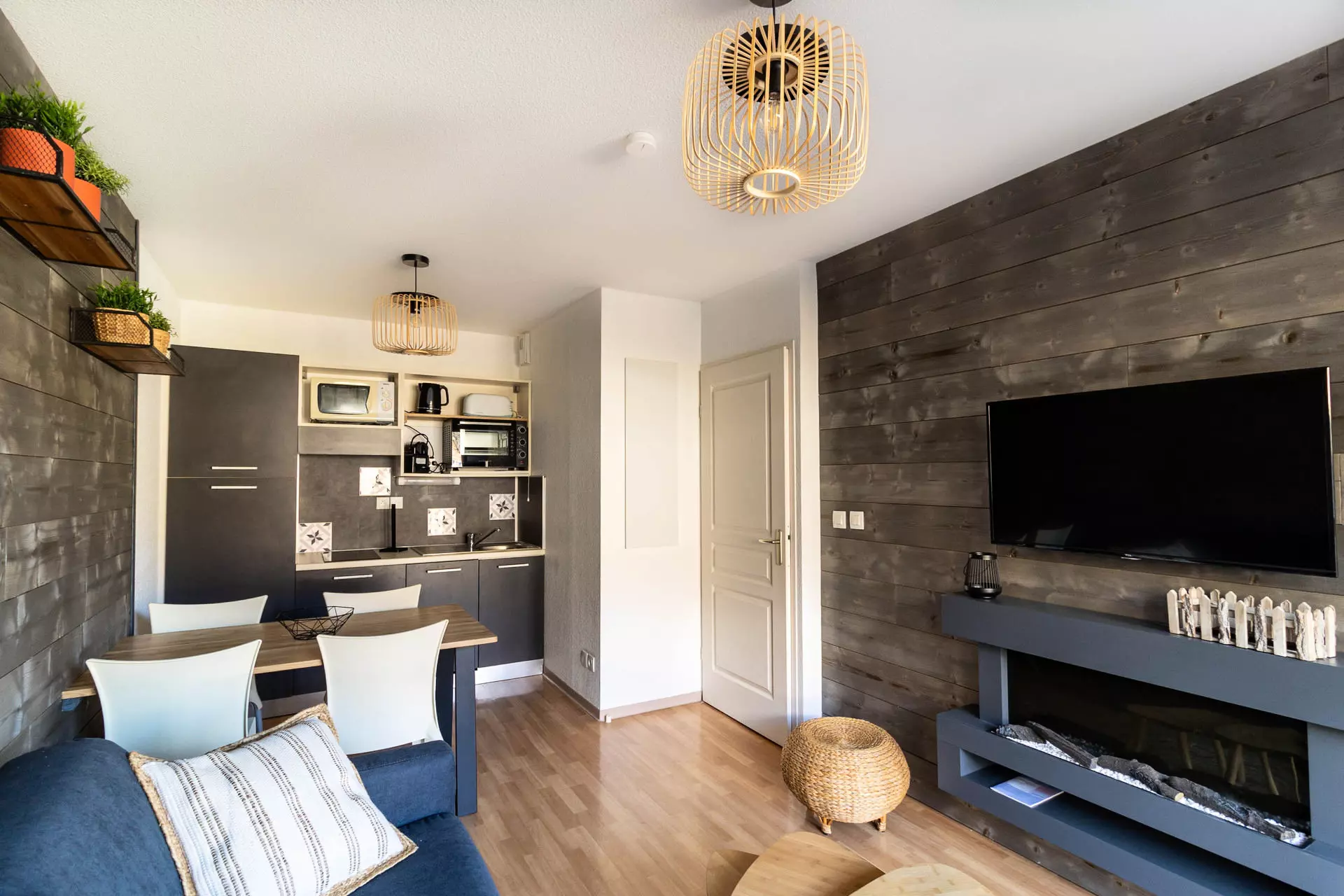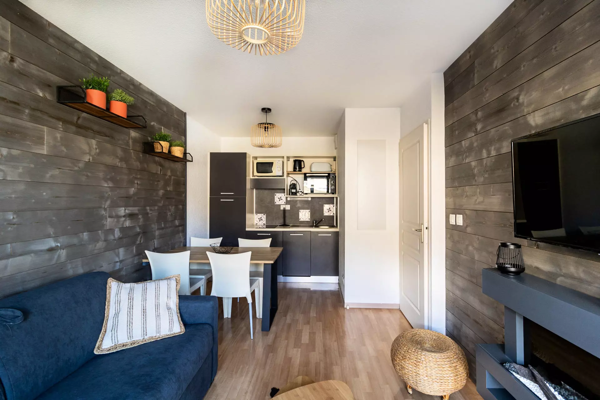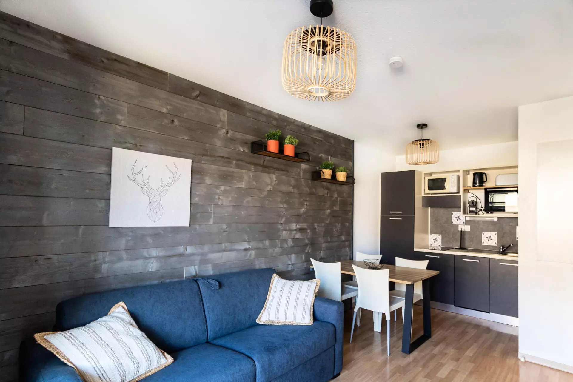 In the living room, you have a lounge area with a comfortable 2-seater convertible sofa bed as well as a kitchen equipped with everything you need to prepare delicious meals just like at home.