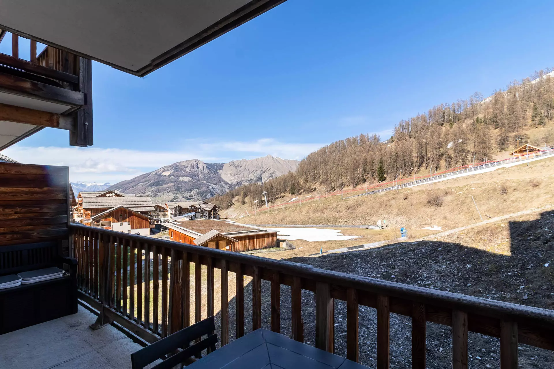 The apartment has a balcony with garden furniture and a view of the slopes for enjoying breakfast in the sun or an aperitif with friends.