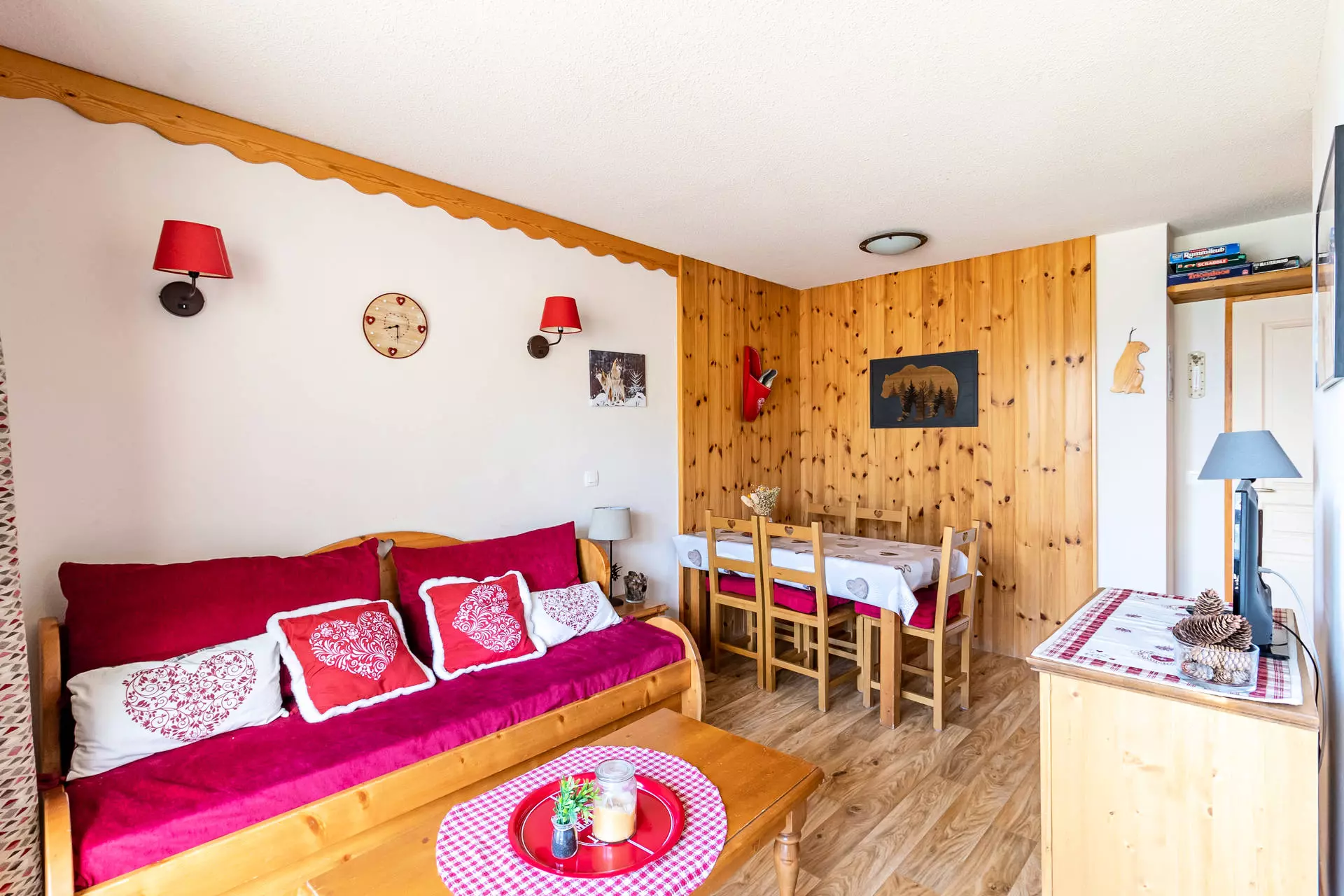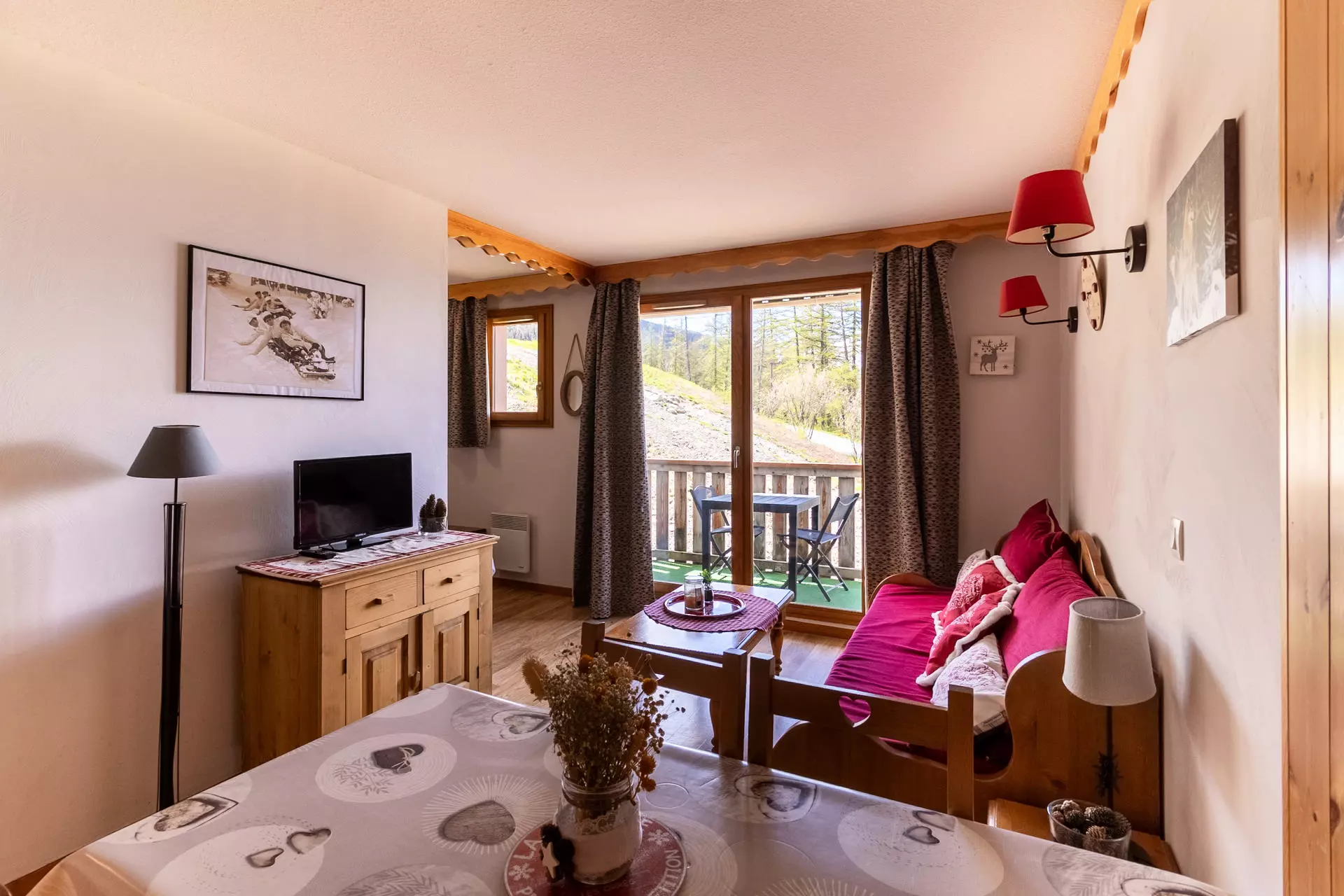 Ideally located in the heart of Les Orres 1800 in the "Les Colchiques" building of the Hauts de Préclaux residence, this pleasant 38 m² northwest-facing T3 is equipped with all the comfort you will need for your stay in the mountains.