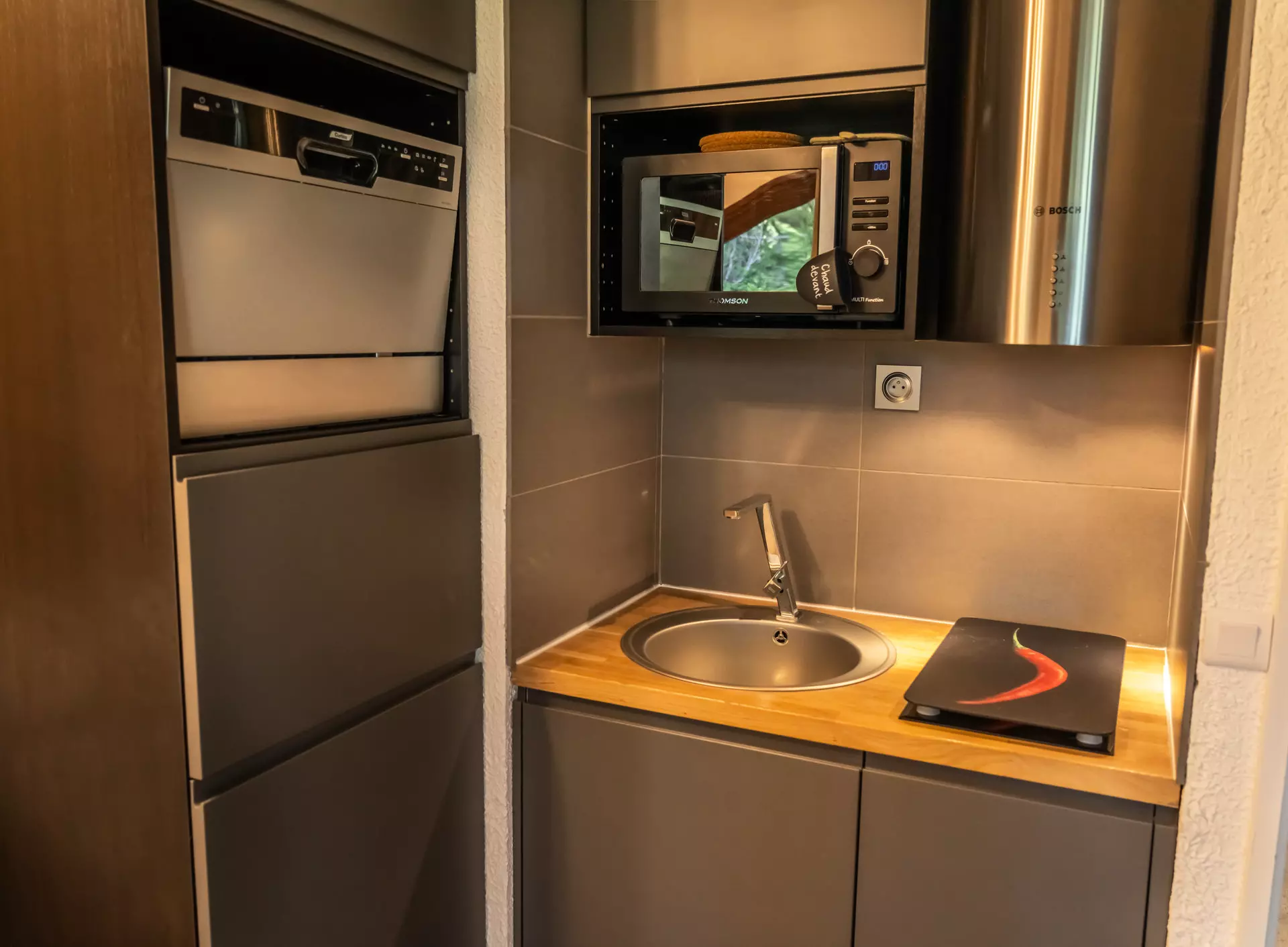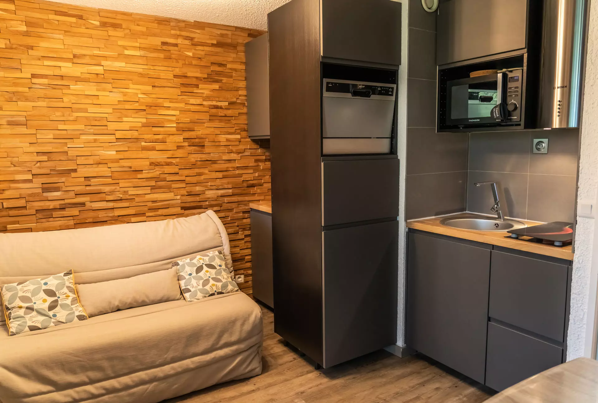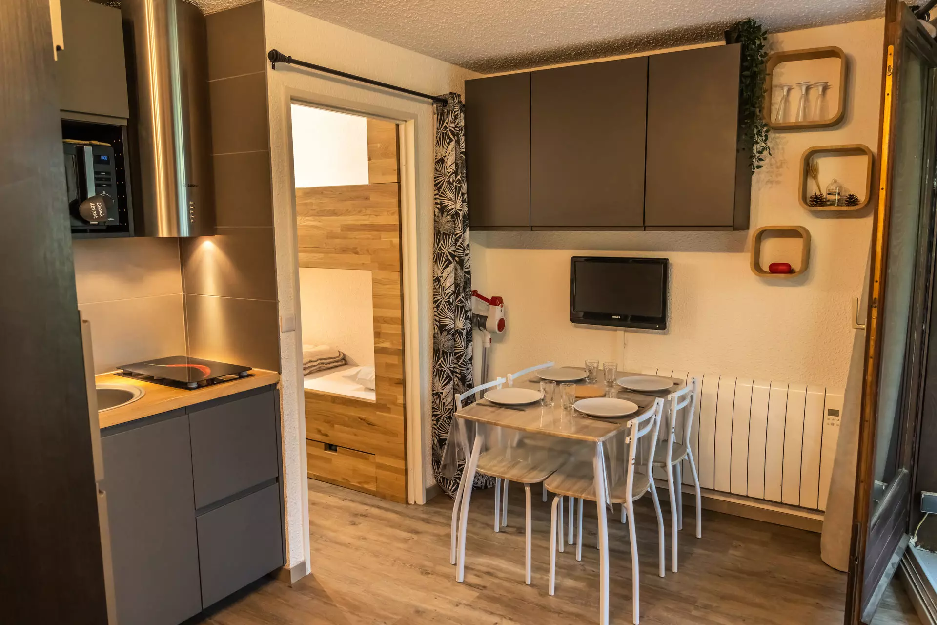 The modern kitchen is fully equipped and the living room decorated for a cozy and friendly atmosphere will delight you for beautiful winter evenings.