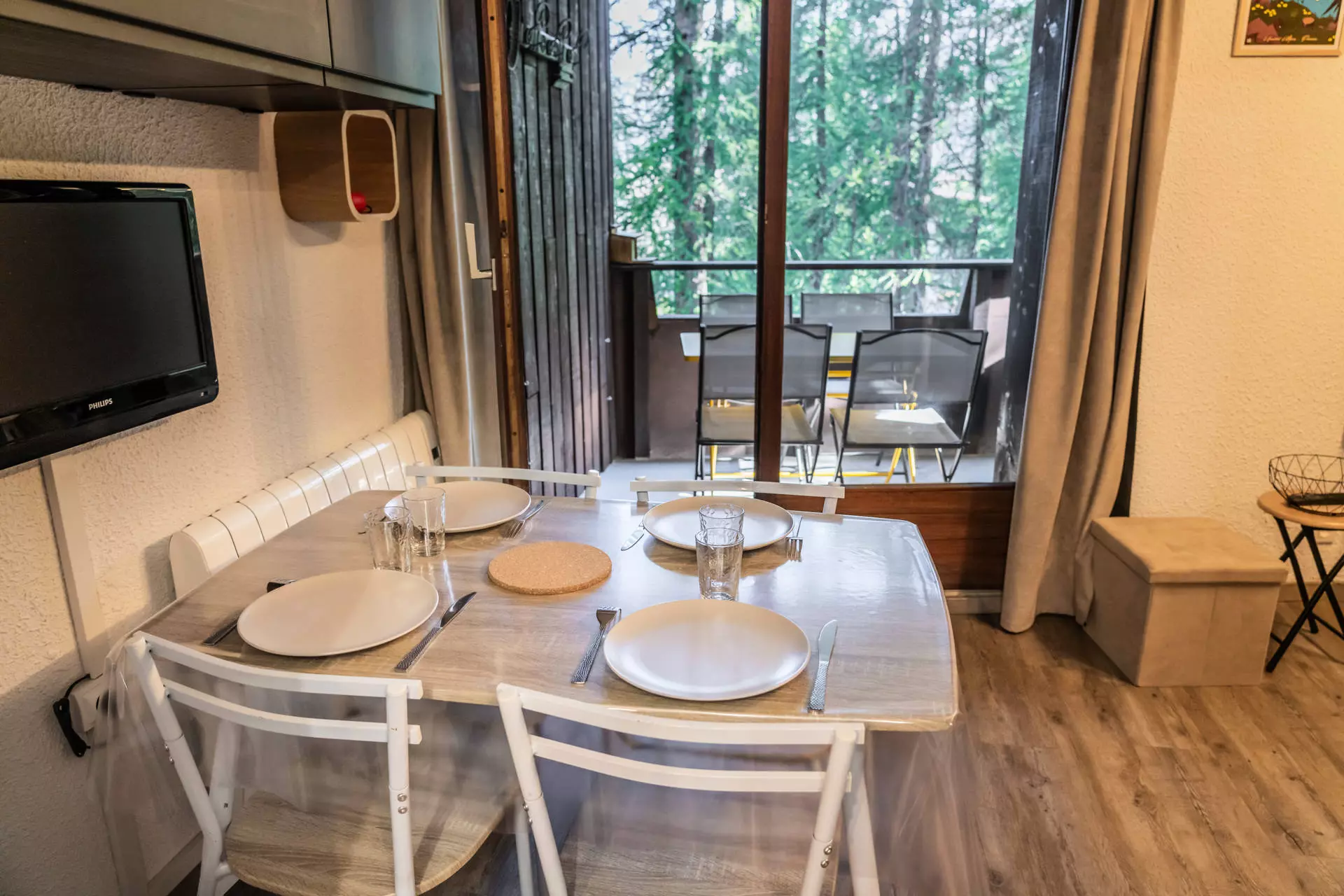 On its balcony nestled among the larches, you can take the time to recharge your batteries with a good coffee and a book.