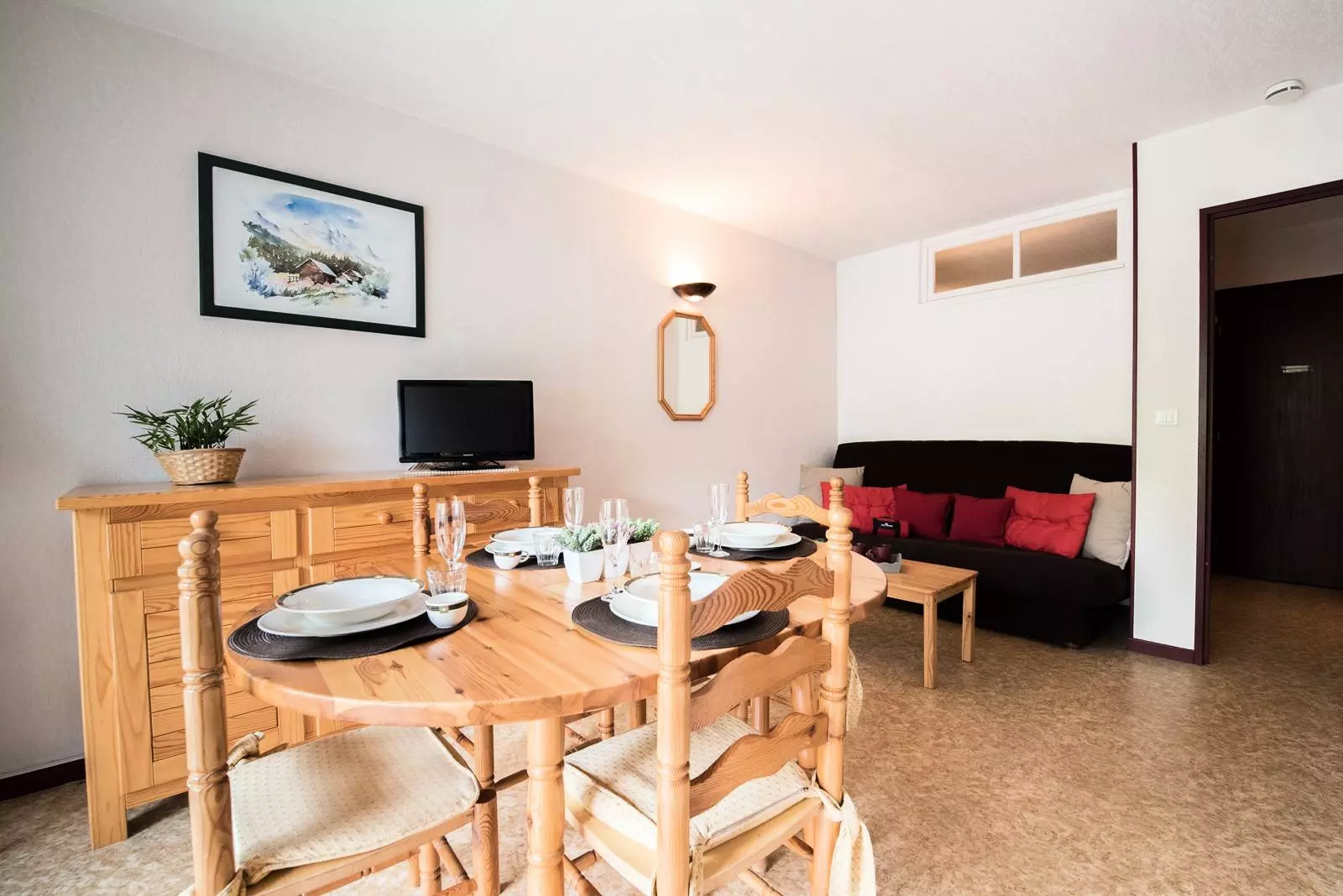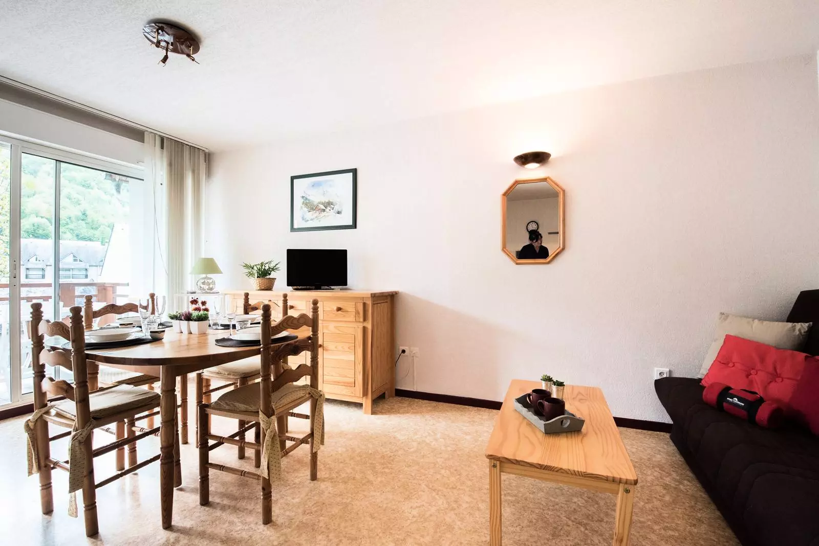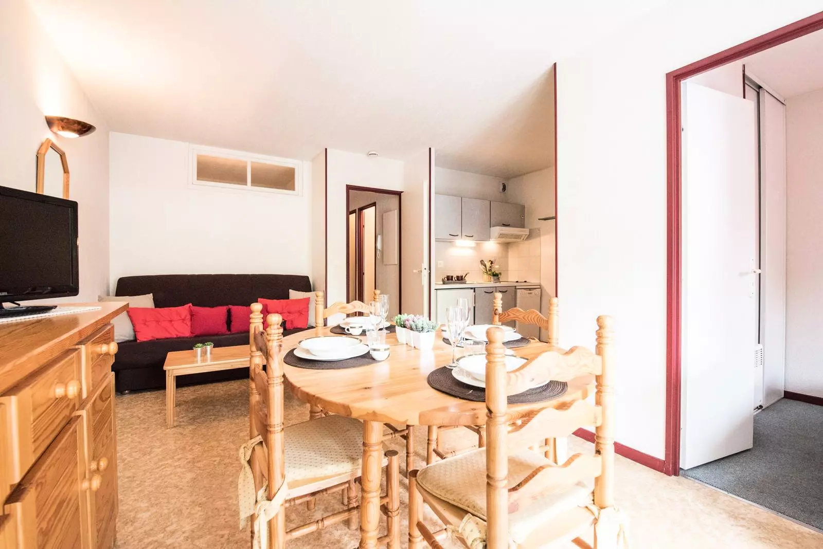 For practicality, you have a fully equipped kitchen open to the living room with its dining room table that can comfortably accommodate 4 guests.