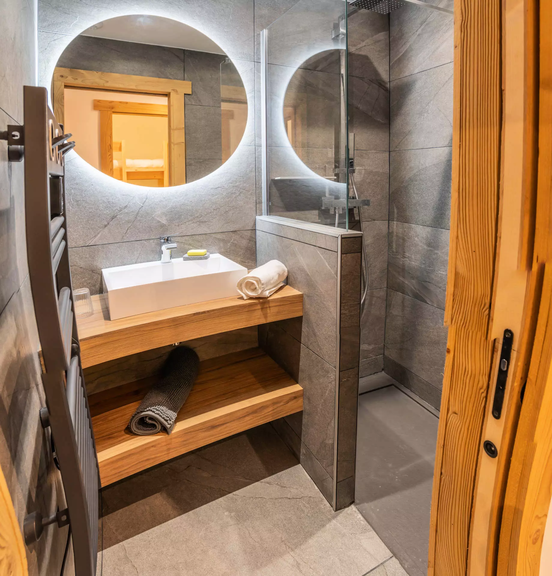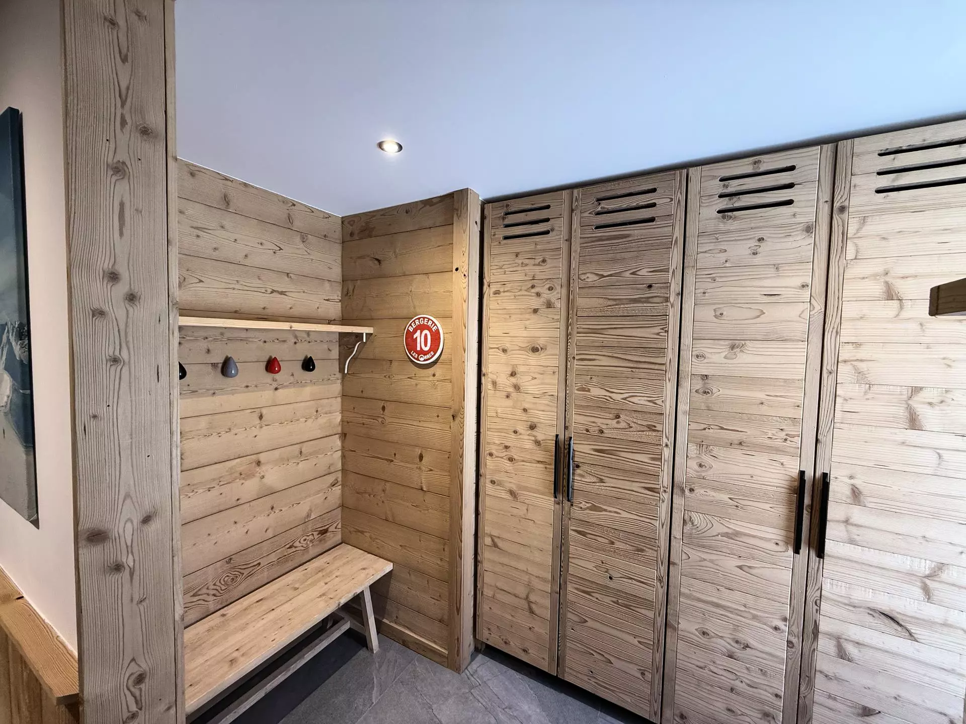 To make your arrival easier, three parking spaces are provided right in front of the chalet, equipped with two GreenUp outlets for electric or hybrid vehicles. Quite convenient! You'll enter the chalet through the shared entrance and can store your ski equipment in a private ski locker. For maximum comfort, the entire chalet has underfloor heating.
