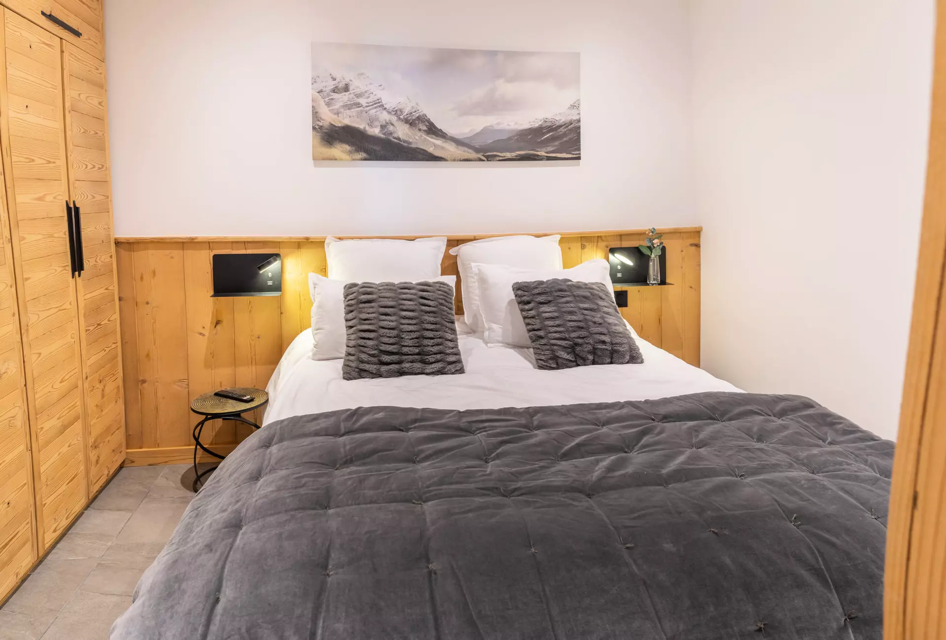 In the Domaine du Loup Blanc, at an altitude of 1,600 meters, this luxury accommodation offers an area of 60 m² on the ground floor of the chalet, for a total of 8 beds.