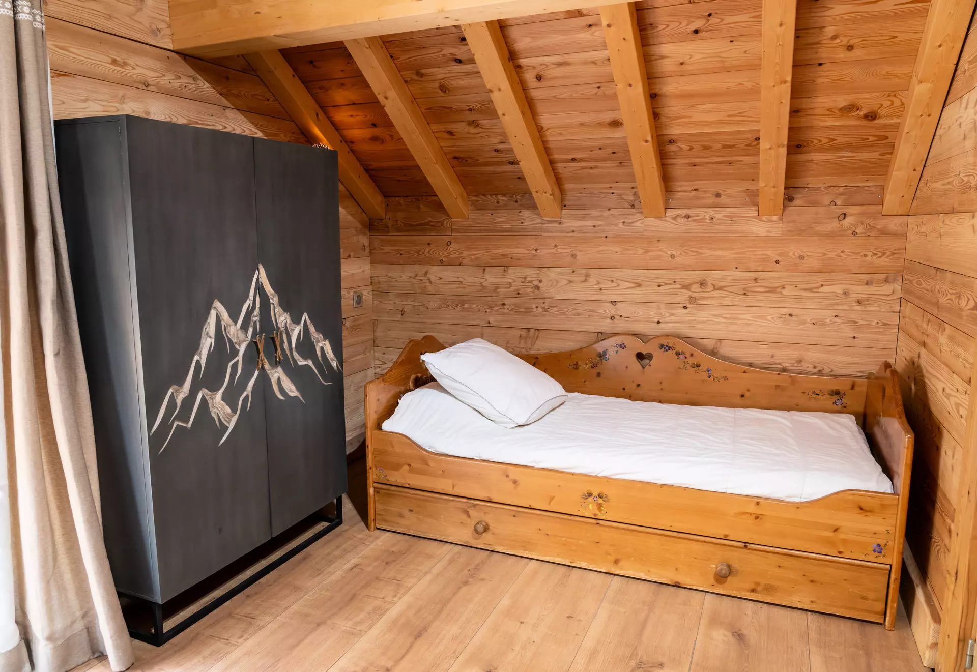 As for sleeping arrangements, you will have two bedrooms: one equipped with a double bed and a single bed and the other with a double bed. The mezzanine consists of a double bed and two single beds. Two bathrooms with showers and toilets complete the ensemble. For long summer evenings in the light of the setting sun, the balcony offers a superb exposure to the south and west with a view of the Embrunais valley and the surrounding mountains. Darts, reading corner and chessboard, this chalet is the promise of moments of conviviality and relaxation guaranteed. The chalet has also obtained the 4 larch label from the Les Orres tourist office.