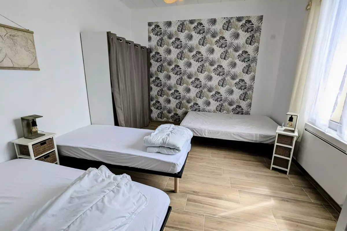 - a bedroom with 1 double bed and 2 single beds