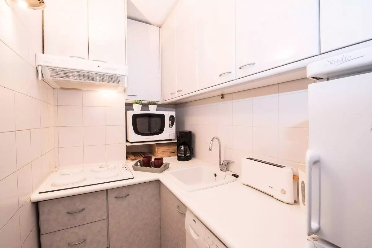 a fully equipped kitchen open to the living room with its dining room table that can comfortably accommodate 6 guests.