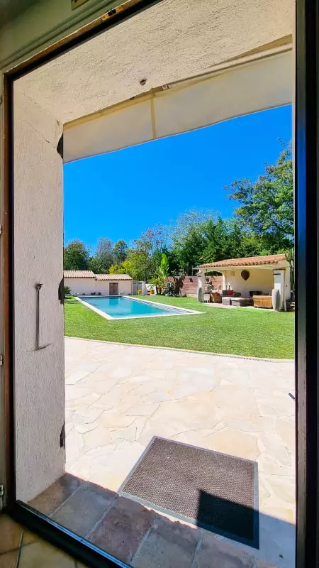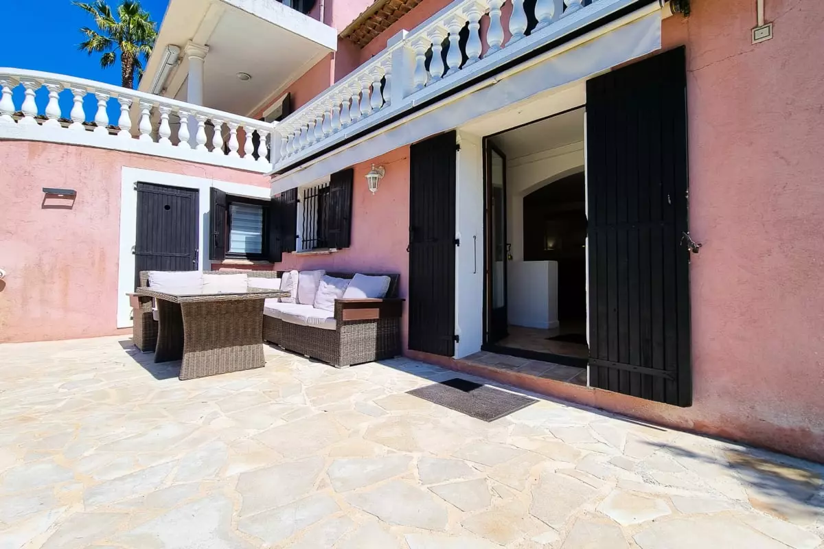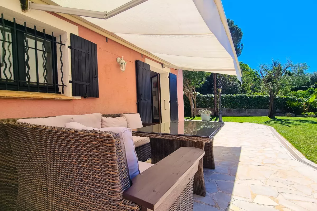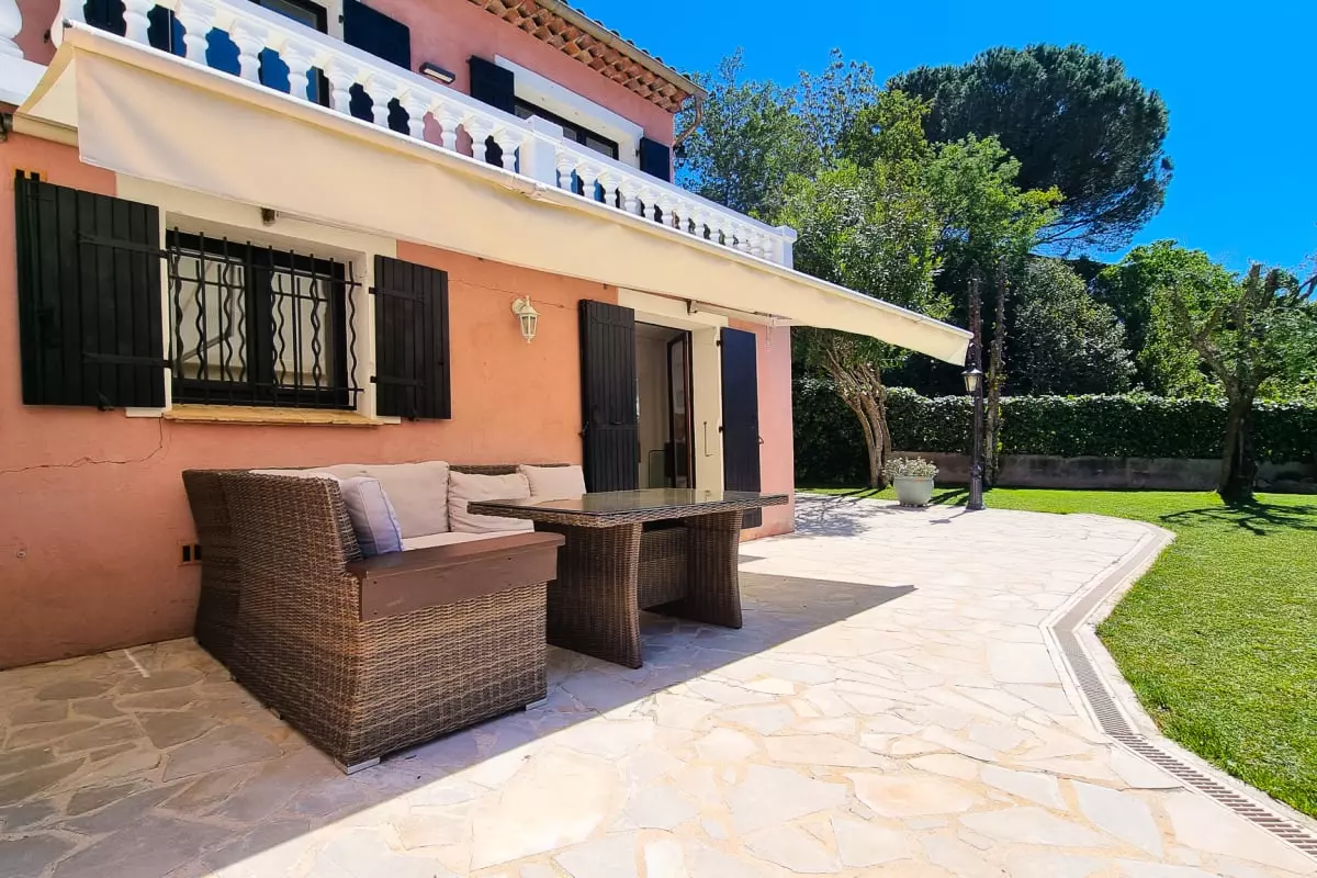 Magnificent lower villa for 5 people in Mandelieu-La-Nae, you will enjoy a large terrace, gas barbecues, solar shower, a heated swimming pool and pool house.