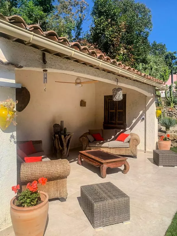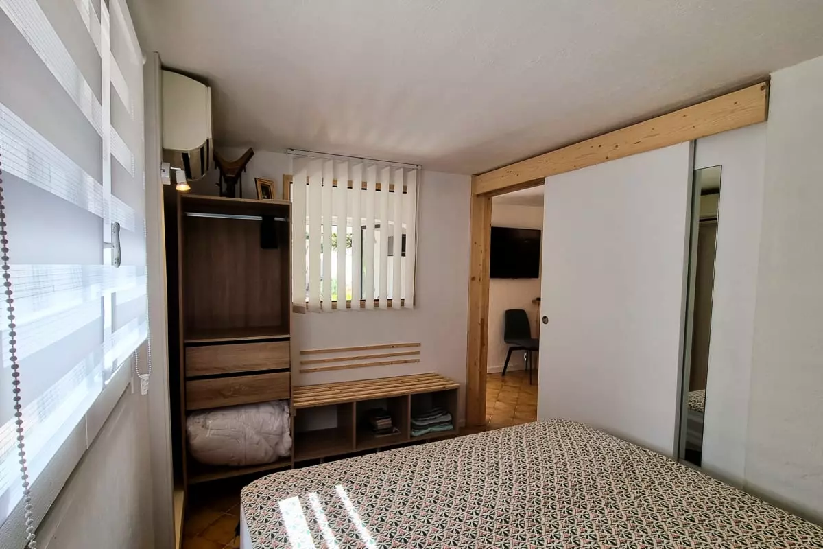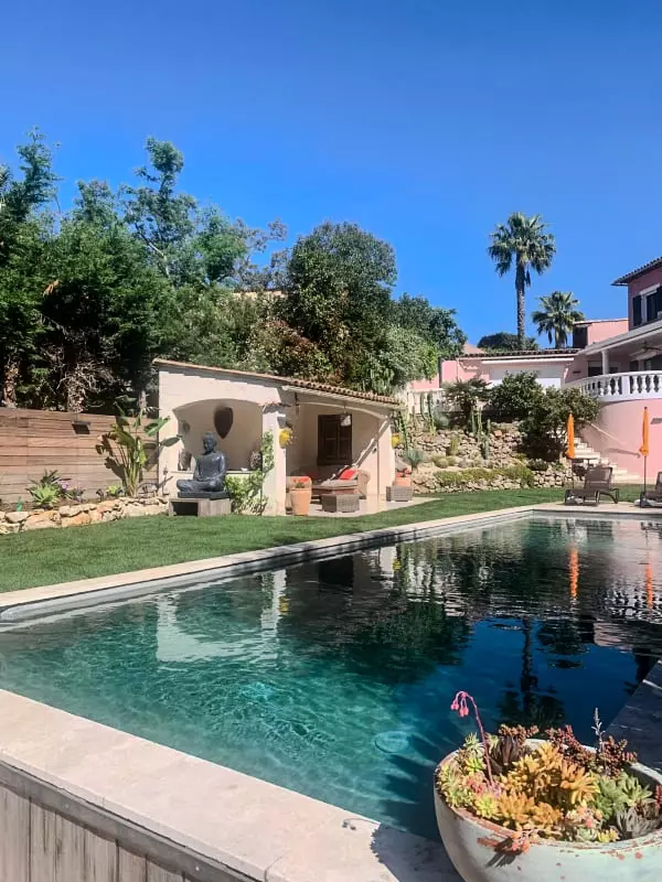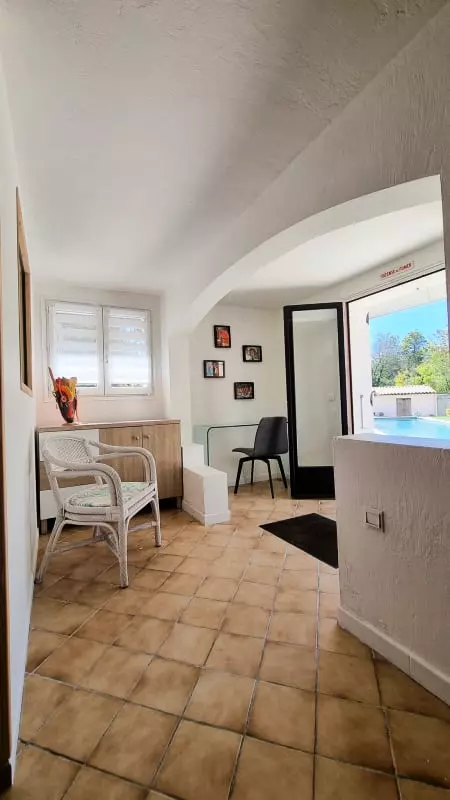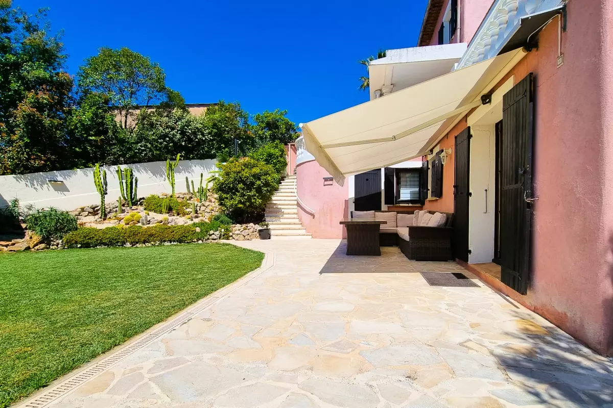 Magnificent lower villa for 5 people in Mandelieu-La-Nae, you will enjoy a large terrace, gas barbecues, solar shower, a heated swimming pool and pool house.