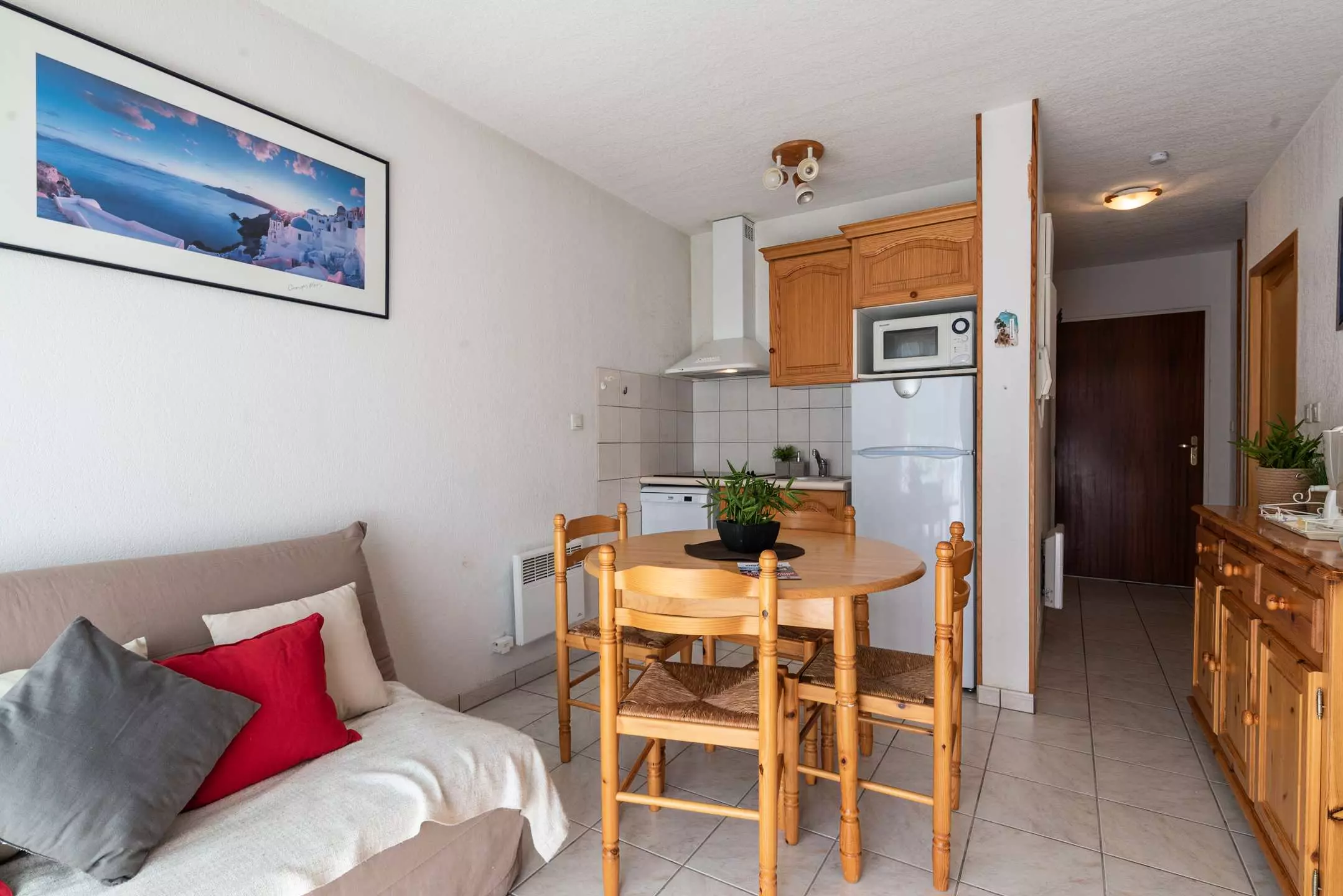 Living room with TV, equipped kitchenette