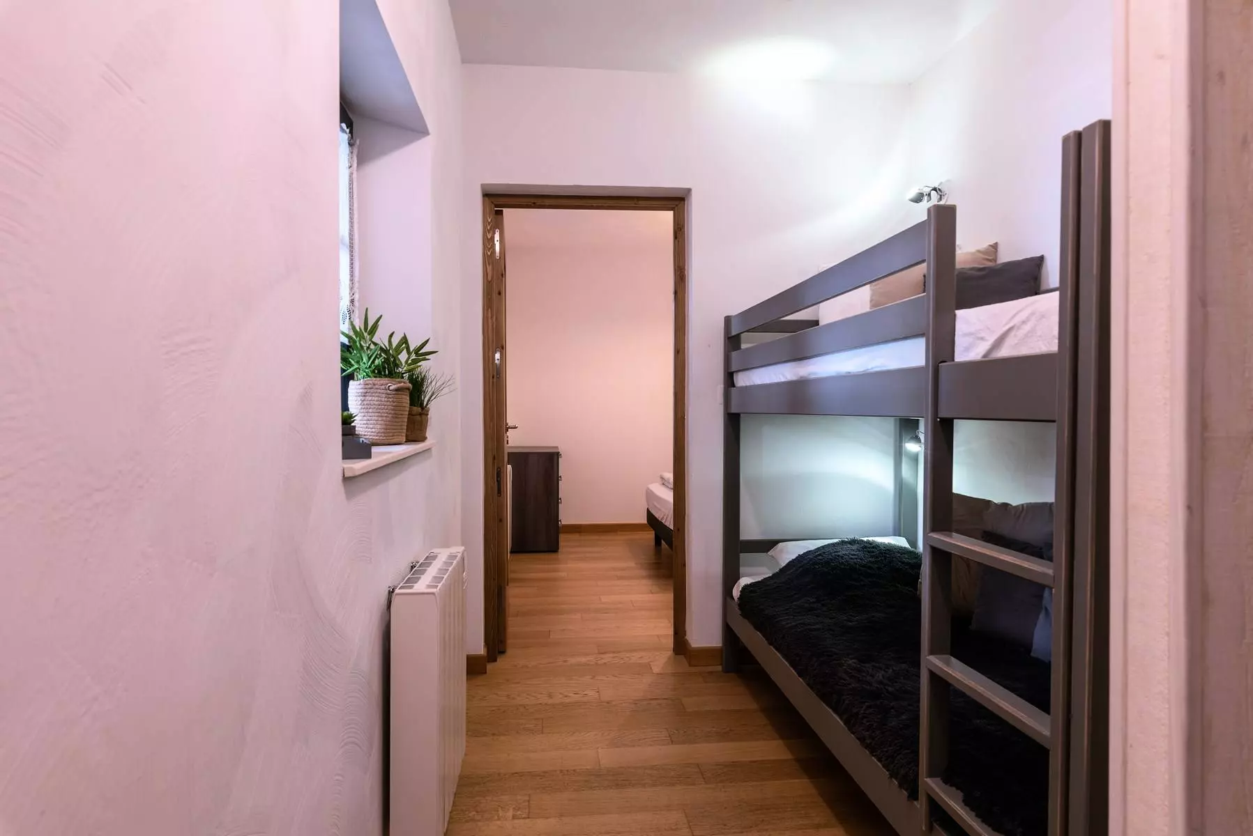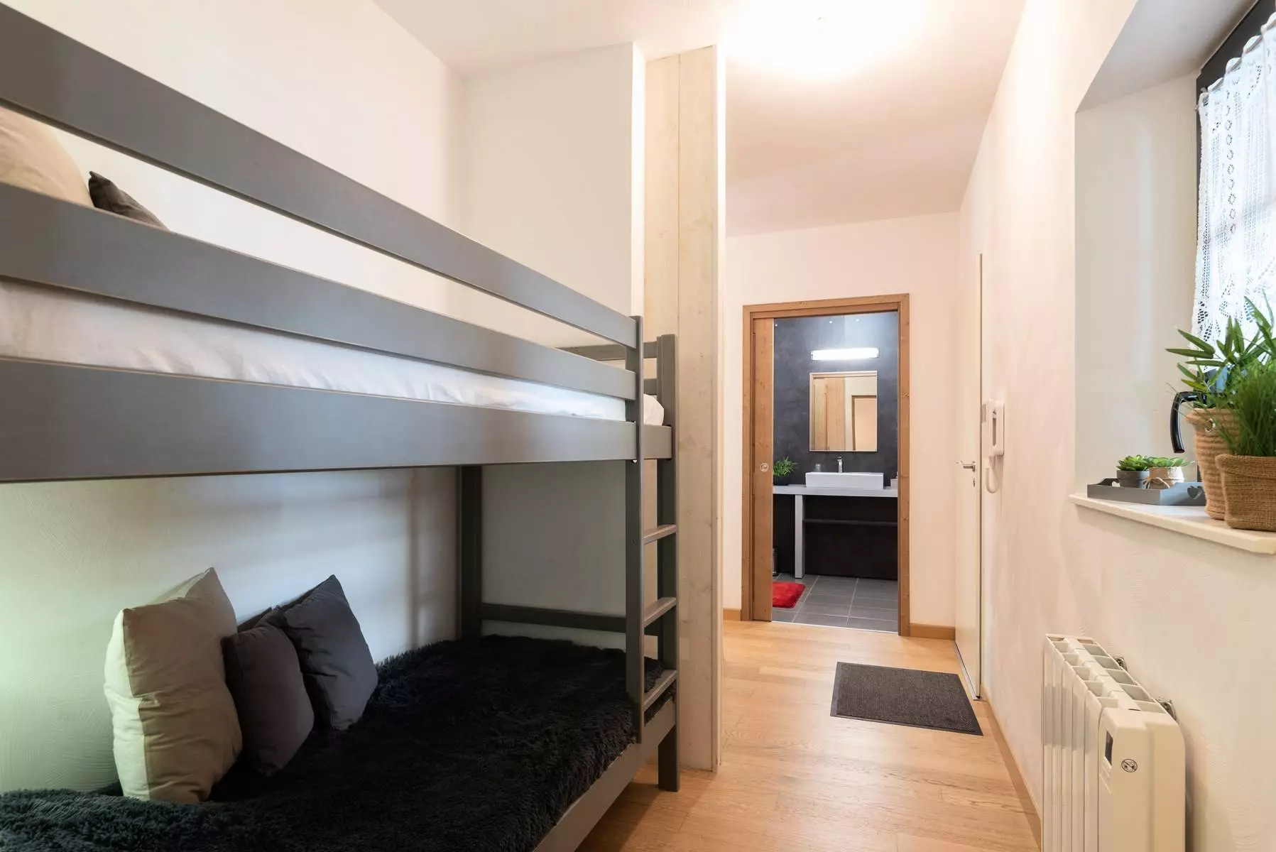 A sleeping area with 2 bunk beds (90 cm)