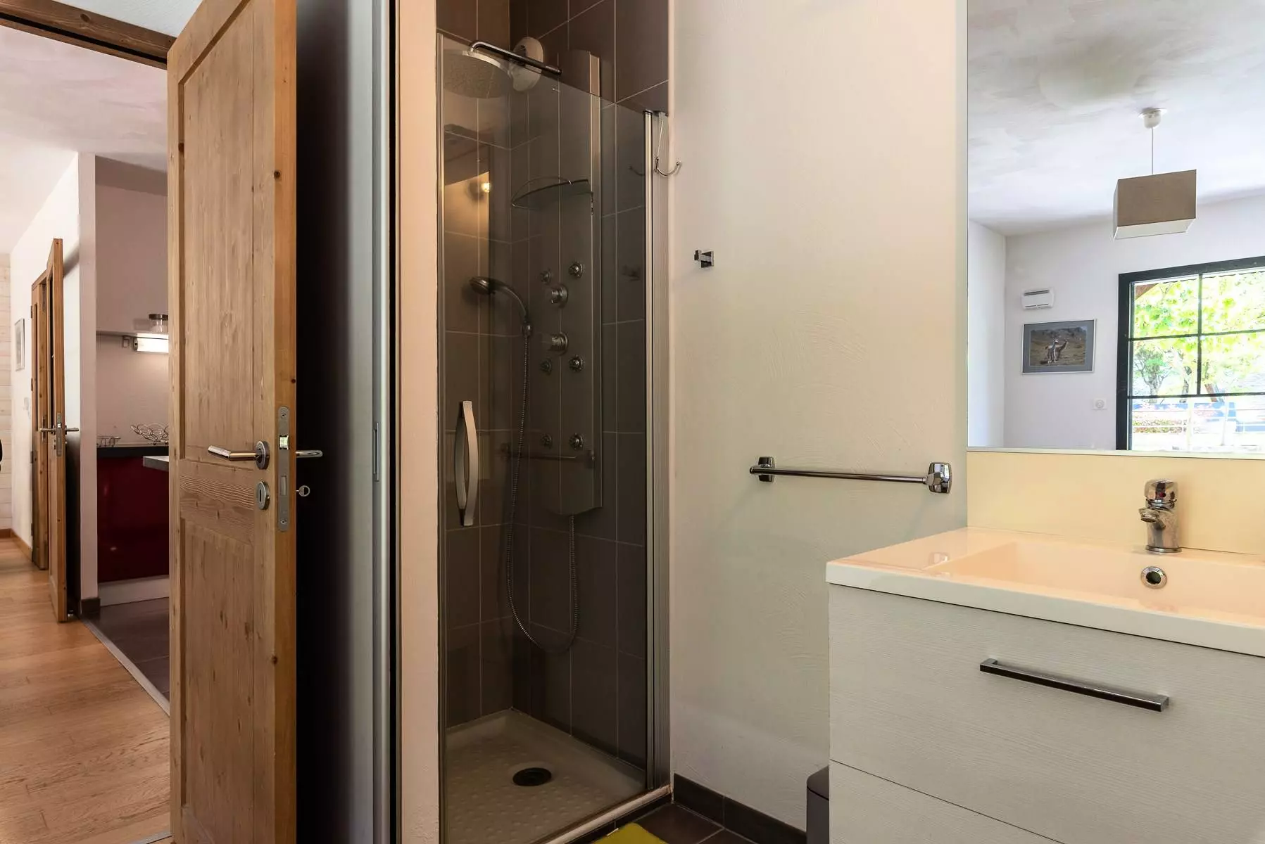 This beautiful apartment is located in the luxury residence, Le Petit Verger in the heart of the village on the ground floor with an area of 76.35 m2.