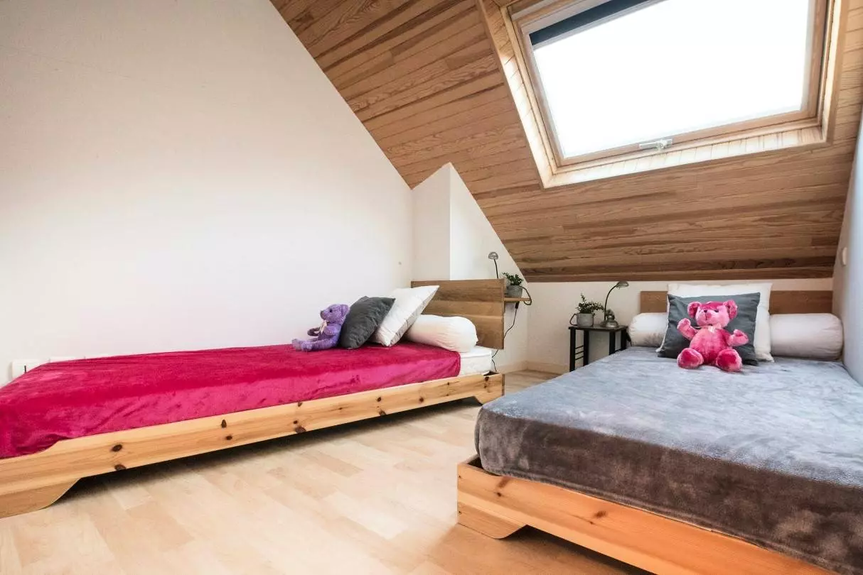 A bedroom with 2 separate 80 cm beds