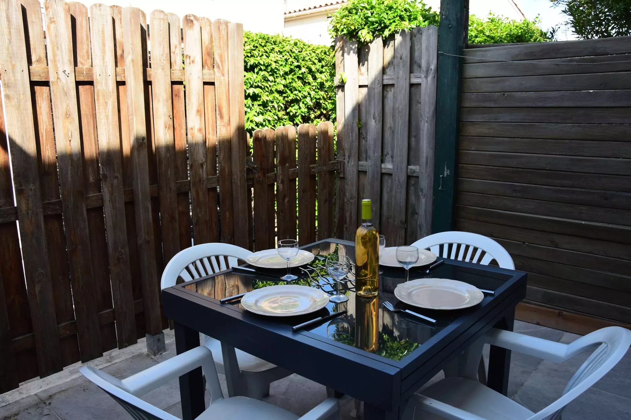 250m from the beach, small holiday home (25 m2) adjoining a gated residence with swimming pool.