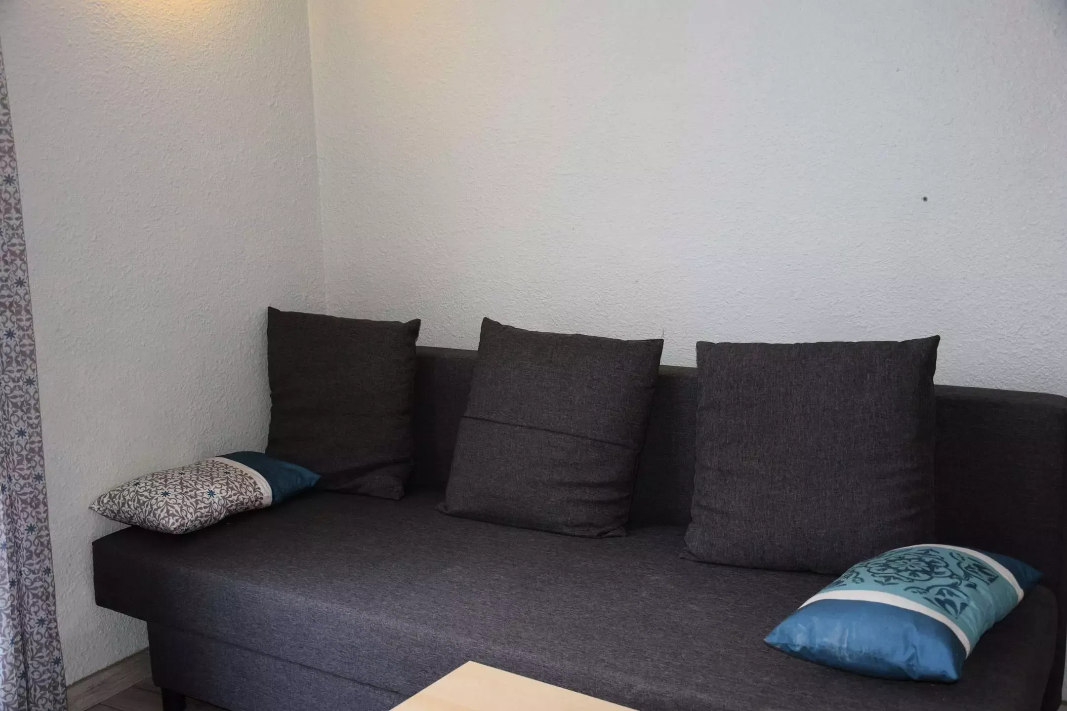 On the ground floor: Living room with sofa bed, table, chairs, TV, fan. Kitchen area (dishwasher, oven/microwave combination, ceramic hob, fridge/freezer, electric coffee maker, etc.). Shower room (shower, sink, toilet, washing machine).