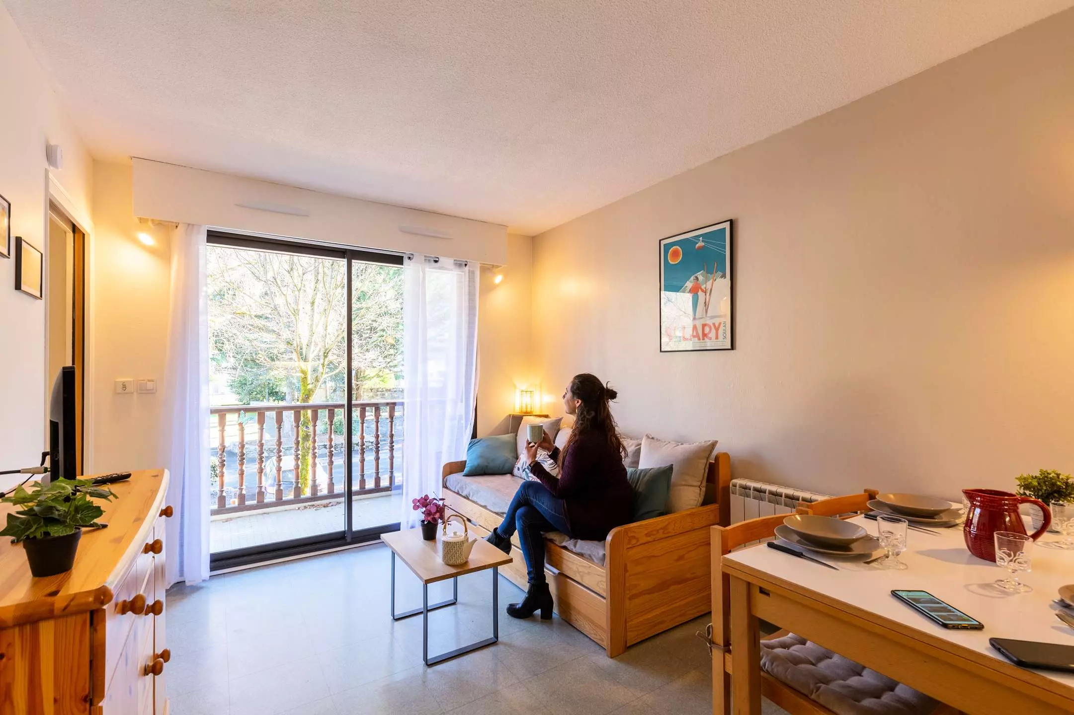 charming little cocooning and bright apartment close to shops and at the foot of the cable car.