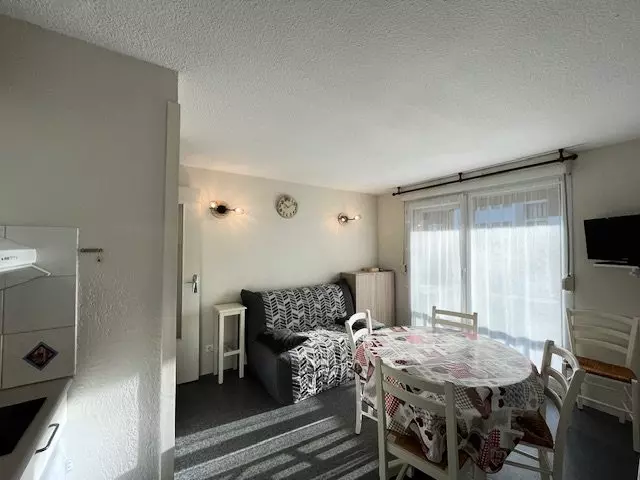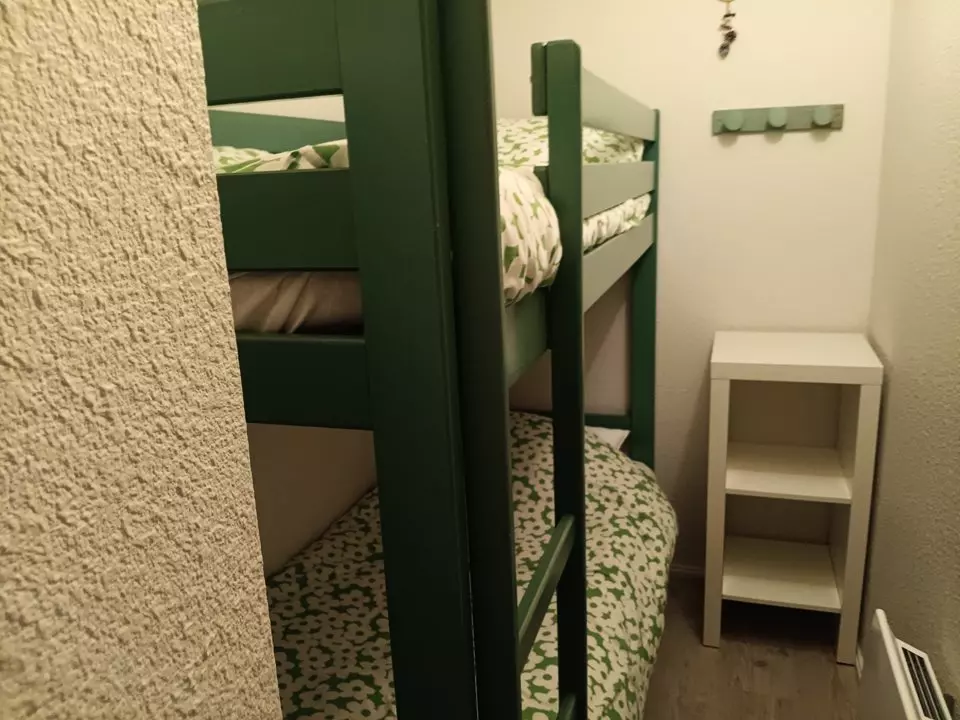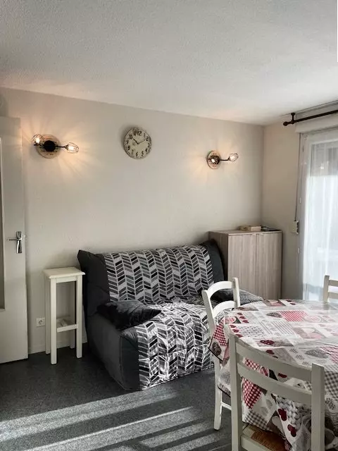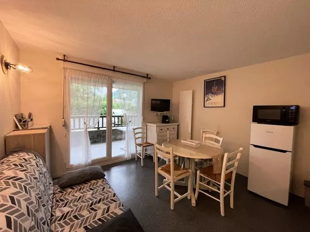 In the VIGNEMALE residence, a stone's throw from the center, located on the ground floor, just 5 steps up, apartment for 4/6 people consisting of a living room with sofa bed, TV and well-equipped kitchenette with LL MO MINI-OVEN opening onto a sheltered south-facing terrace with garden furniture, a sleeping area with a double bed and a mountain corner with 2 bunk beds. Bathroom. Separate WC. Ski locker and bicycle storage. Pets prohibited.
