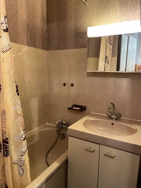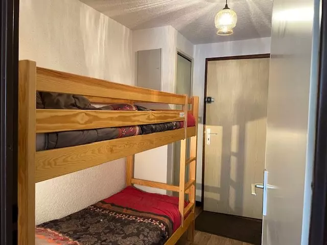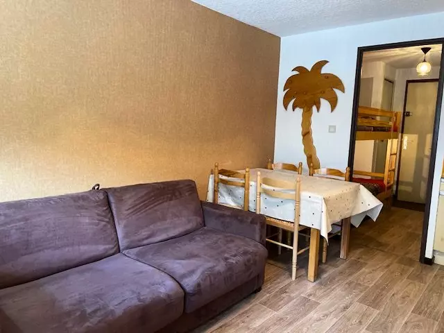 In the residence "AURETTE" in the heart of the village, STUDIO for 4 people of approximately 25m² + 5m² loggia, on the 1st floor with elevator facing East with a view of the mountain and the village, is composed of a living room with equipped kitchenette, a 2-seater sofa bed, a TV, at the entrance 2 bunk beds, bathroom and separate toilet. Pine furniture. Carpeted floor. Ski locker. Parking space. Facing East.