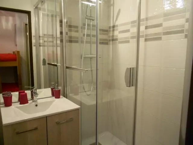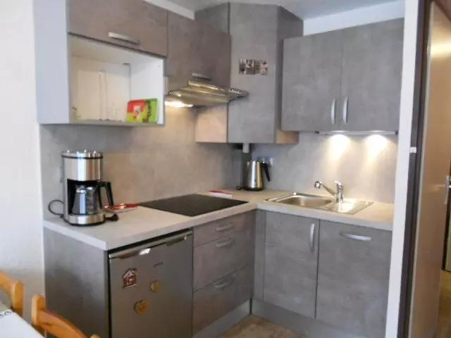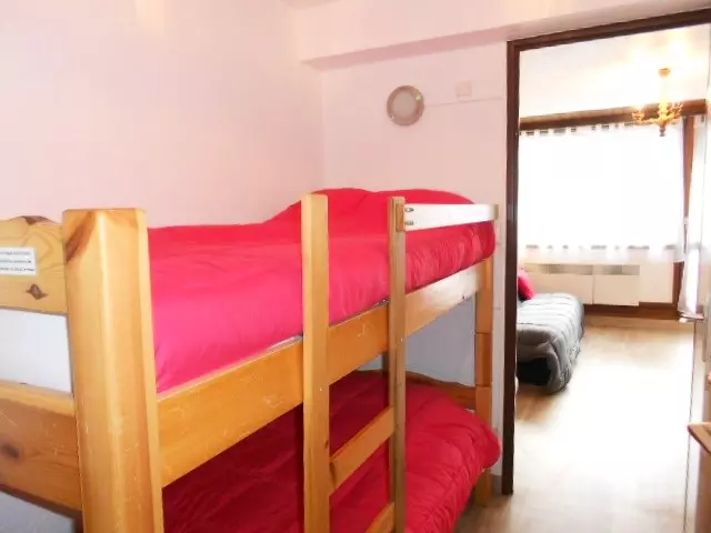 In the residence "AURETTE" in the heart of the village; APARTMENT for 4 people of 28m² + 5m² terrace, on the 2nd floor with elevator facing East with a view of the mountain and the village; Is composed of a living room with kitchenette equipped with LV, MW, 3 vitro hobs, a non-convertible sofa, a TV, a bedroom with a 140 bed without opening, shower room and separate toilet. Pine furniture. Parquet floor.