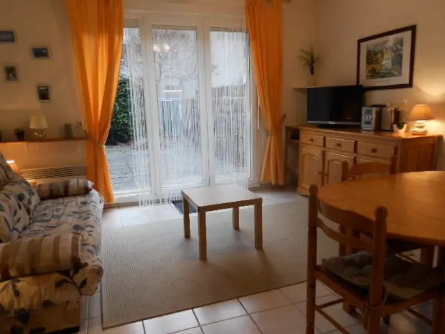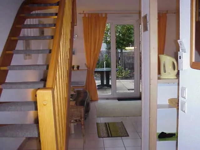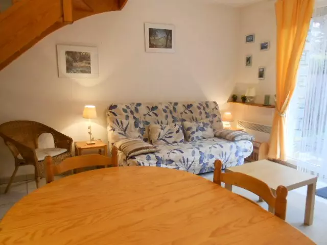 In a residence of 8 small terraced houses, pleasant 2-bedroom duplex apartment for 6 people. Entrance with closet and WC.