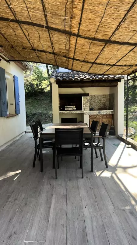 Surrounded by a holm oak forest and a 3,000 m² Mediterranean garden, fully fenced, Villa Juliette offers areas for napping, a swimming pool, and direct access to the "La Garrigue" natural park.