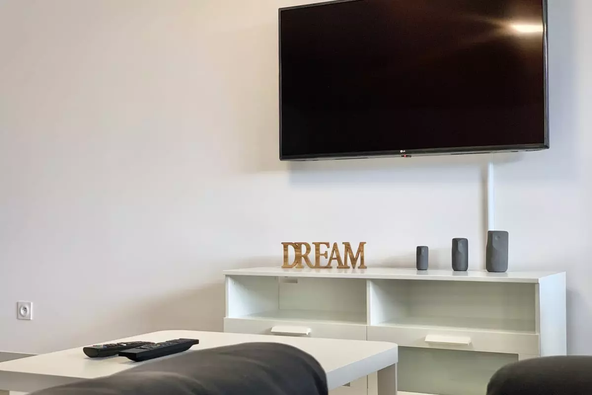 ⭐ Travel in comfort thanks to the amenities in the apartment, such as a television, free Wi-Fi, kitchen equipment (dishwasher, oven, microwave, coffee maker, kettle, plenty of storage space, etc.), plenty of storage space, bed linen and towels for 4 people on arrival.
