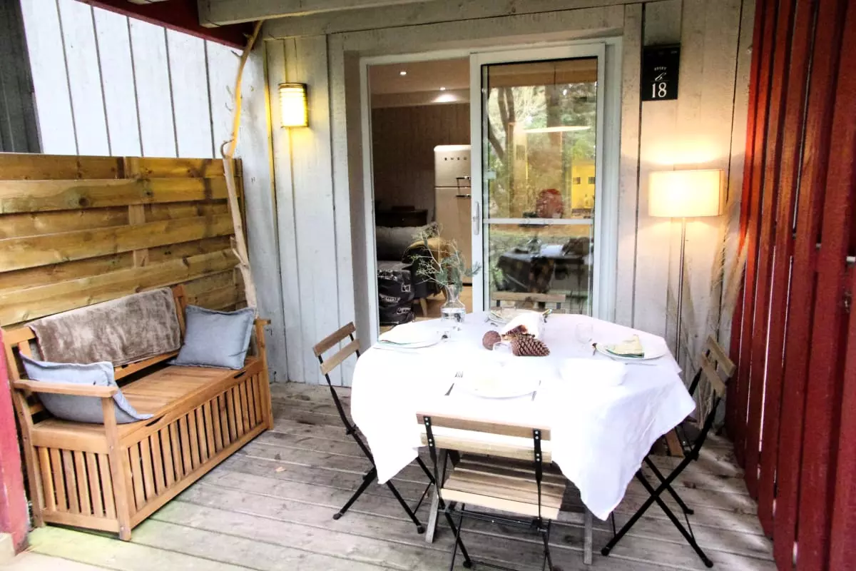 - and a covered and furnished terrace, not overlooked, overlooking the green spaces of the estate. The terrace is not completely enclosed, but wooden partitions on each side give you privacy from the neighbors.