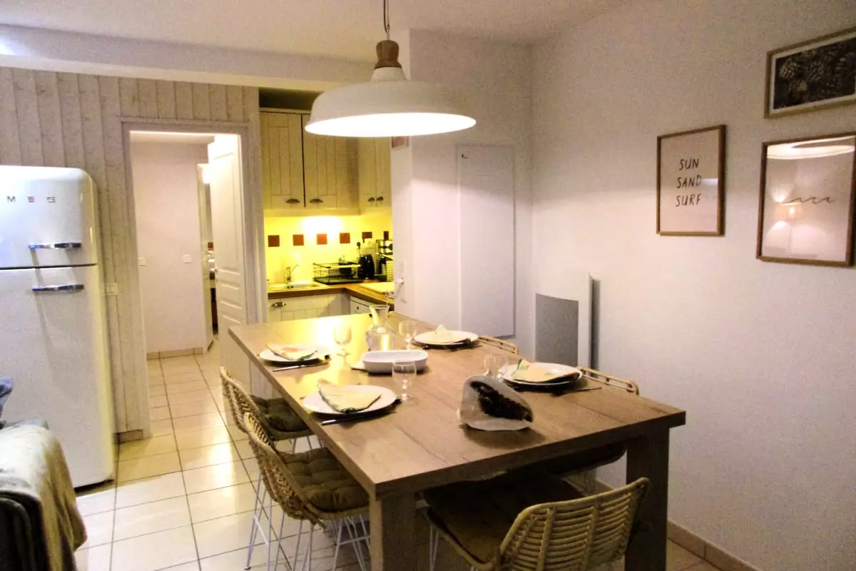 The location of the apartment also allows you to discover and visit: the second beach of Moliets, the "central", more lively with its area of bars and restaurants, 10 minutes by bike and the pond of Moliets and the Adrenaline Park 2 minutes by car or barely 10 minutes by bike! The TOURIST OFFICE, 10 minutes by bike, opens its doors to you for all tourist information, the famous Mouth of the Huchet current 5 minutes by car, the Étang de la Prade 4 minutes by car, the Étang de Léon 13 minutes, the Courant de Huchet 8 minutes…