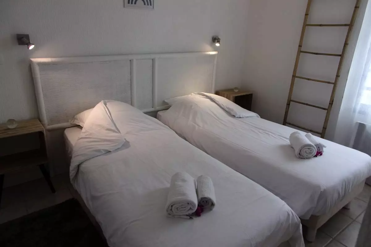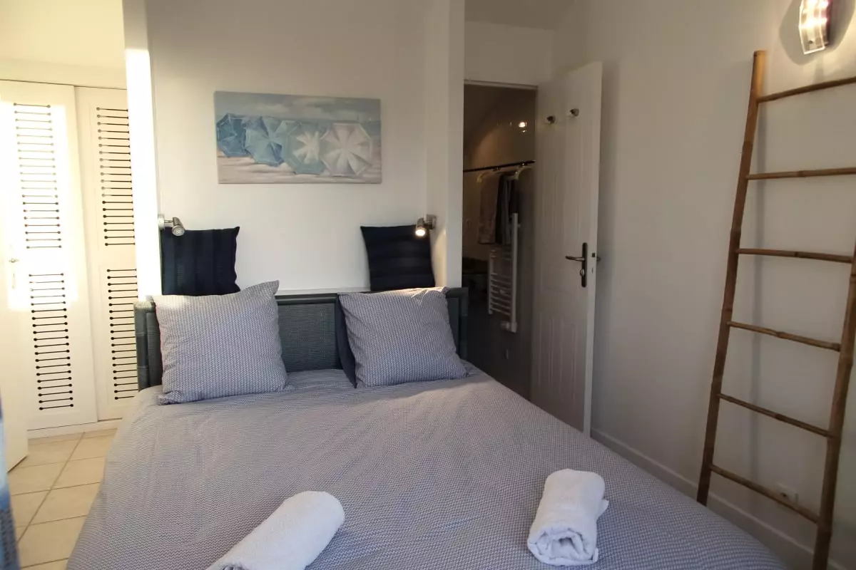 The "12 Club Royal" is a 4-star furnished tourist accommodation! ⭐⭐⭐⭐ Able to accommodate up to 6 people ideally and up to 8, the house is composed on the ground floor of 2 bedrooms: one, the master suite, with a double bed 160 X200 and its private bathroom opens onto the large outdoor exotic wood terrace, the second with 2 single beds 0.80 x 200, also with a private and adjoining shower room and its WC. The mezzanine is equipped with a pretty quality convertible bed 140 X 200 and can accommodate 1 or 2 more people if necessary. A second individual WC is present on the ground floor, as well as a fitted kitchen opening onto a beautiful living room and a dining area opening with large bay windows onto the terrace. A pretty fireplace with insert and a beautiful contemporary decoration enhance the whole for your pleasure! The large exotic wood terrace is furnished and you have the benefit of a beautiful garden furniture and comfortable designer deckchairs: an electric plancha is offered to you free of charge to complete your comfort. New for 2023: a 3-seater sauna near the swimming pool is installed to relax even more in all seasons!