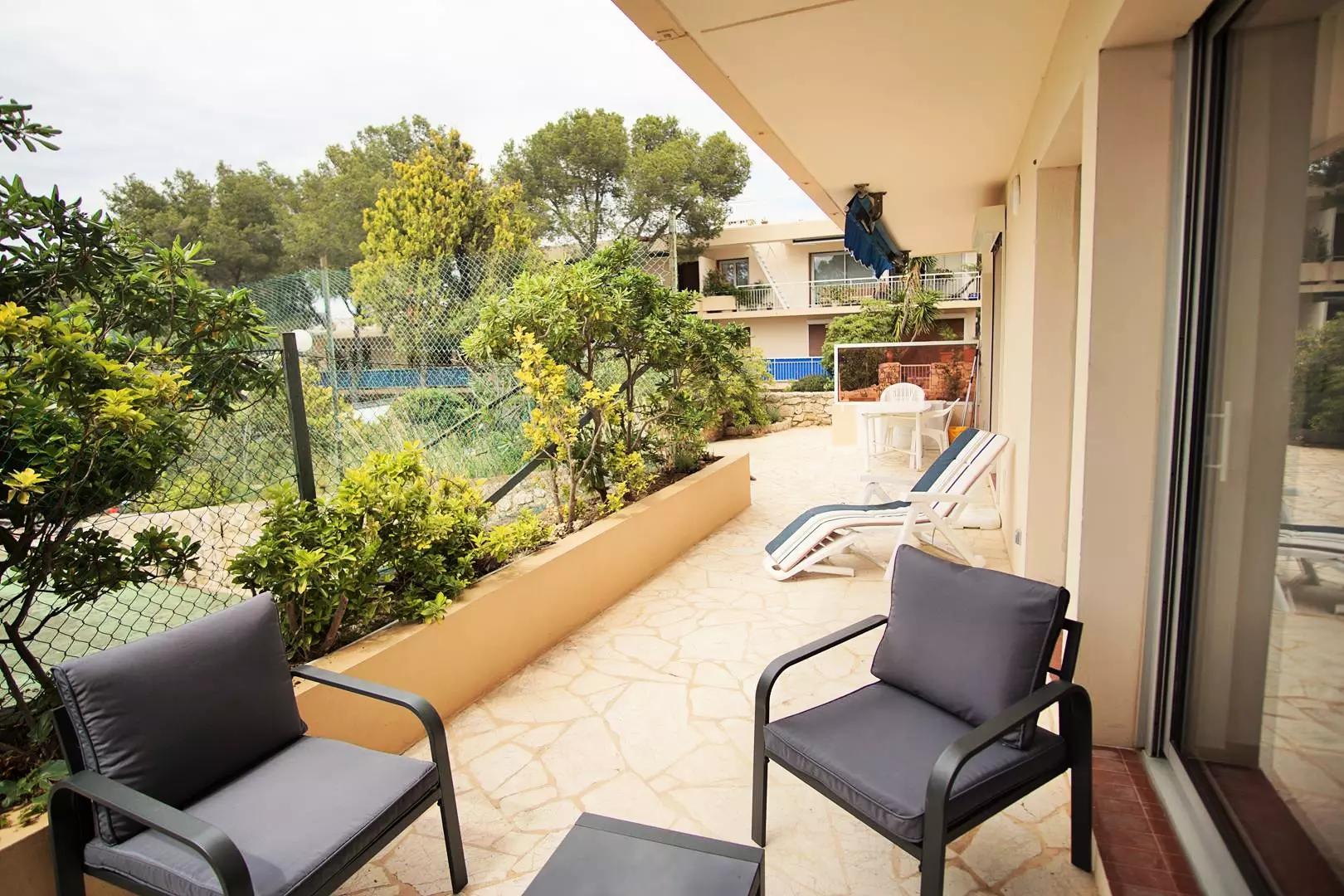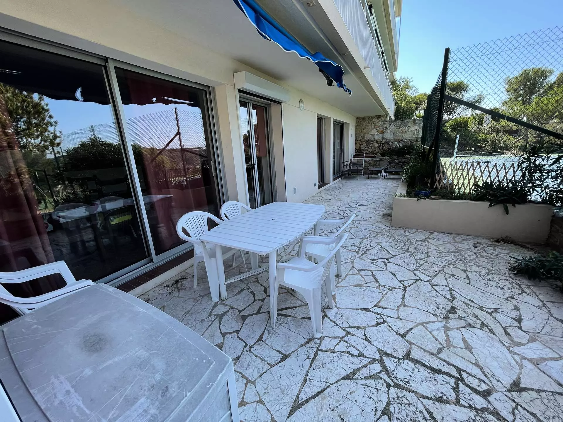 This beautiful, bright apartment is located on the ground floor of a quiet residence with a swimming pool and tennis courts.