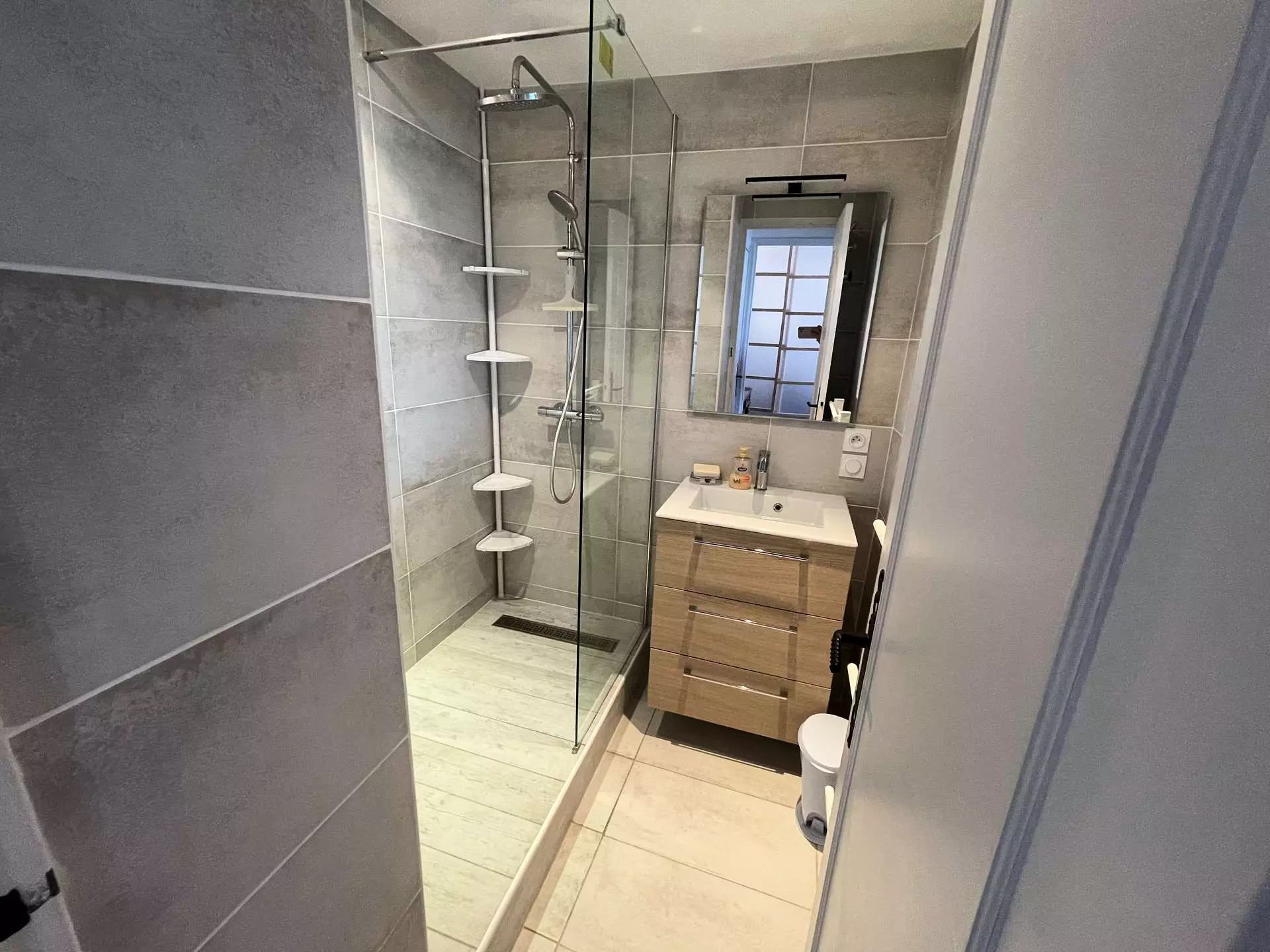 The accommodation consists of a bedroom with a double bed opening onto the exterior, a fitted kitchen opening onto a large living room.