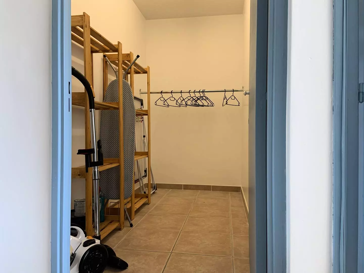 -Vacuum cleaner, ironing board and iron, clothes horse
