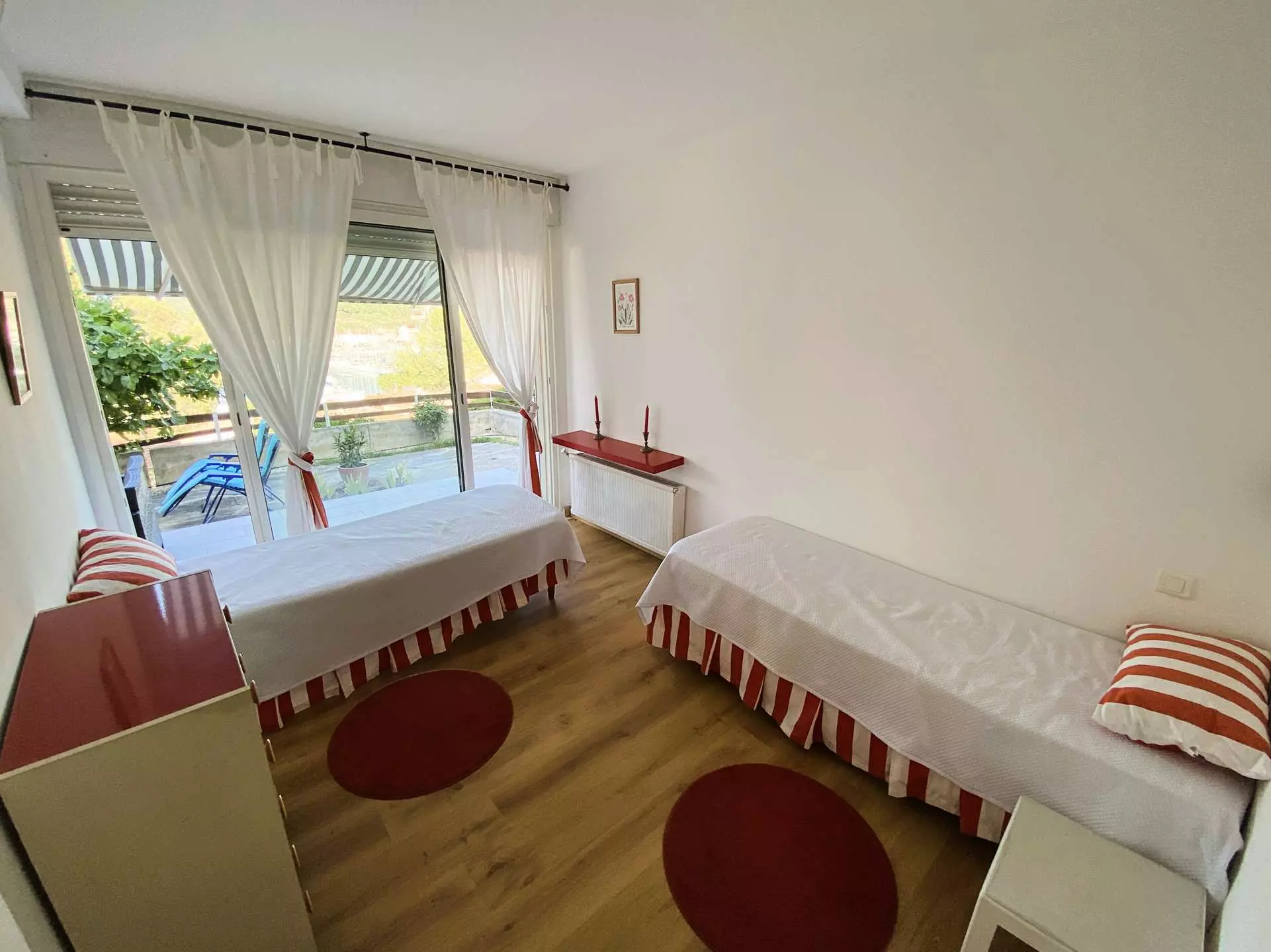 The accommodation is composed of a bright living room, a fitted kitchen, a bedroom with two single beds, a sleeping area with a double bed, a bathroom with shower and bathtub and a separate toilet.