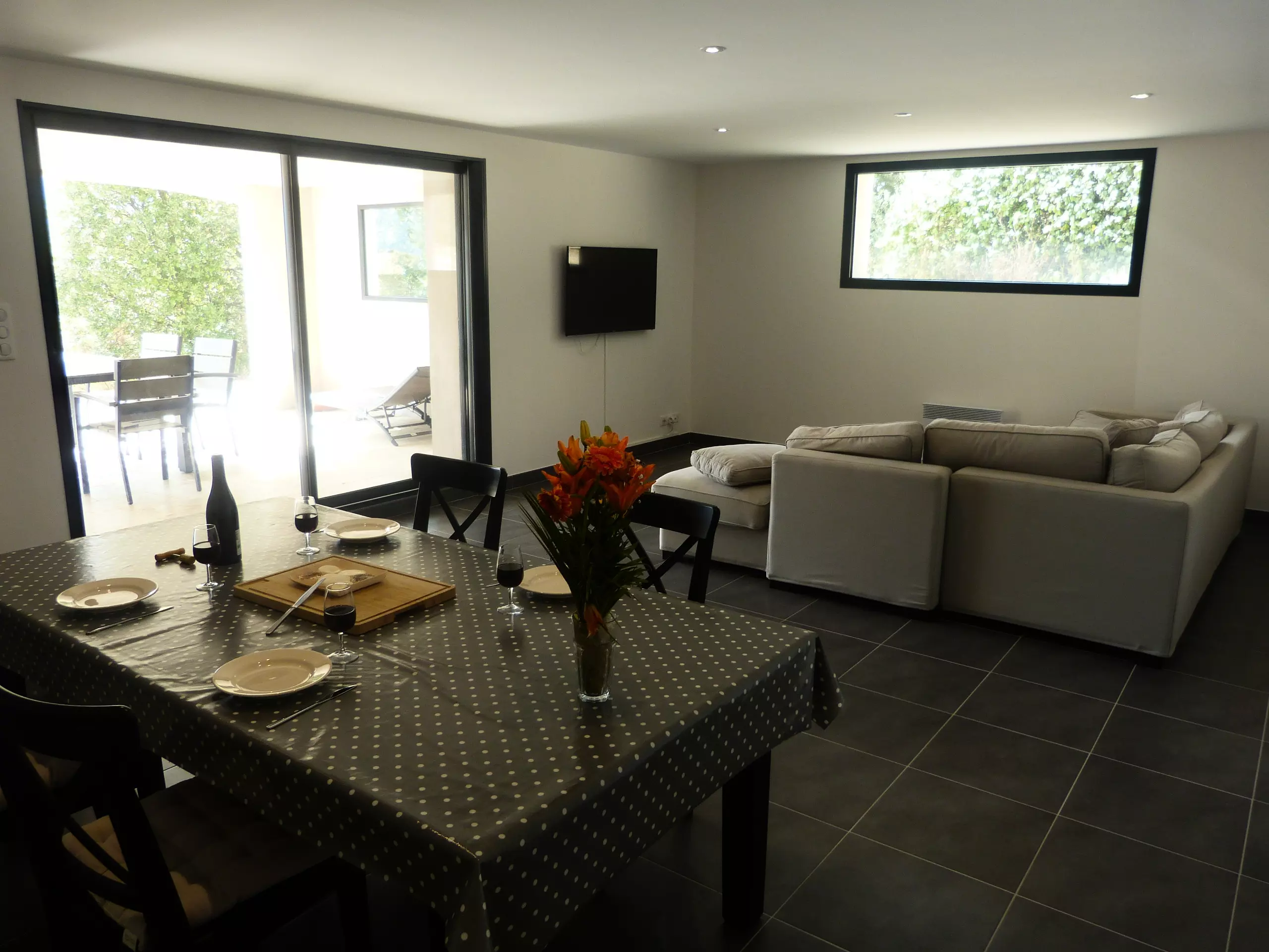 The 40m² covered terrace offers an ideal outdoor space for enjoying moments together. Those who enjoy relaxation will appreciate the shared 15m x 8m swimming pool with views of Mont Ventoux, perfect for cooling off on hot summer days. Friends and families can also enjoy table tennis and pétanque.