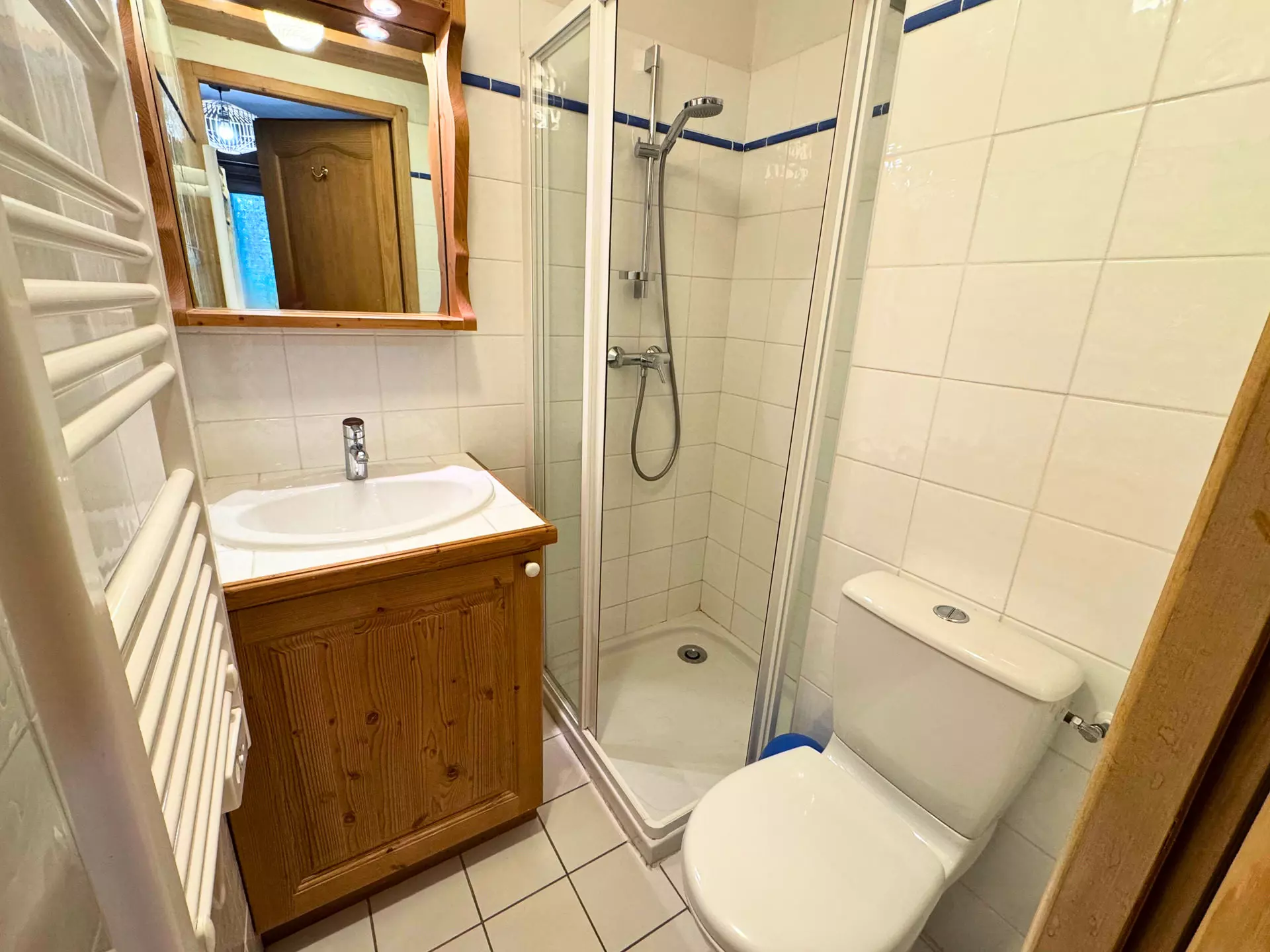 Bedroom 1: double bed (150 x 200 cm) with adjoining shower room (with sink, shower, heated towel rail and toilet)