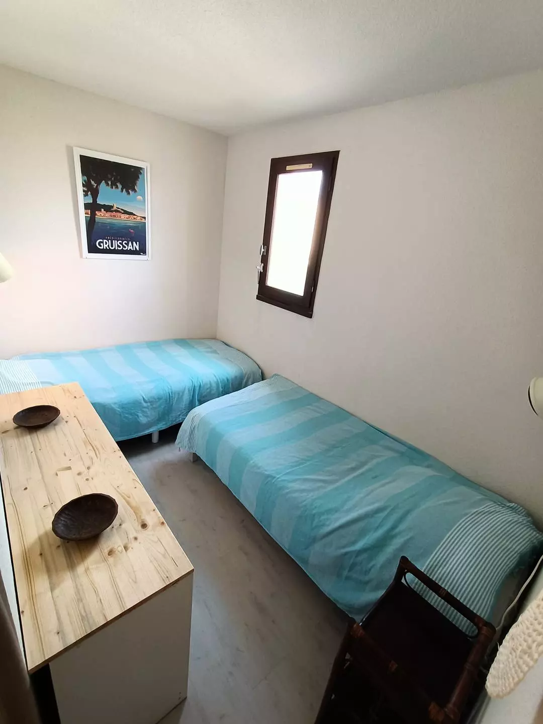 The accommodation consists of a kitchen, a living room equipped with a refrigerator-freezer, microwave, washing machine, filter coffee maker. It has a bedroom with a 140 cm double bed and a second bedroom with two 90 cm single beds. You have a bathroom with toilet in the apartment.