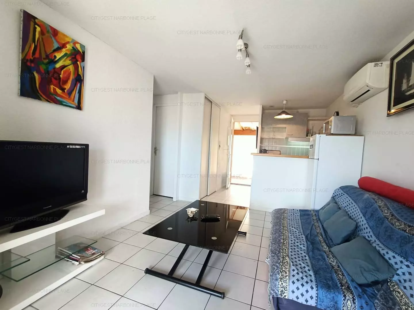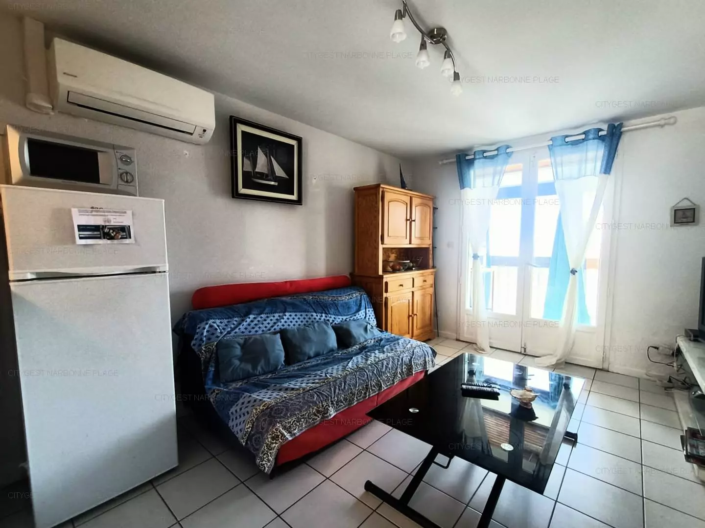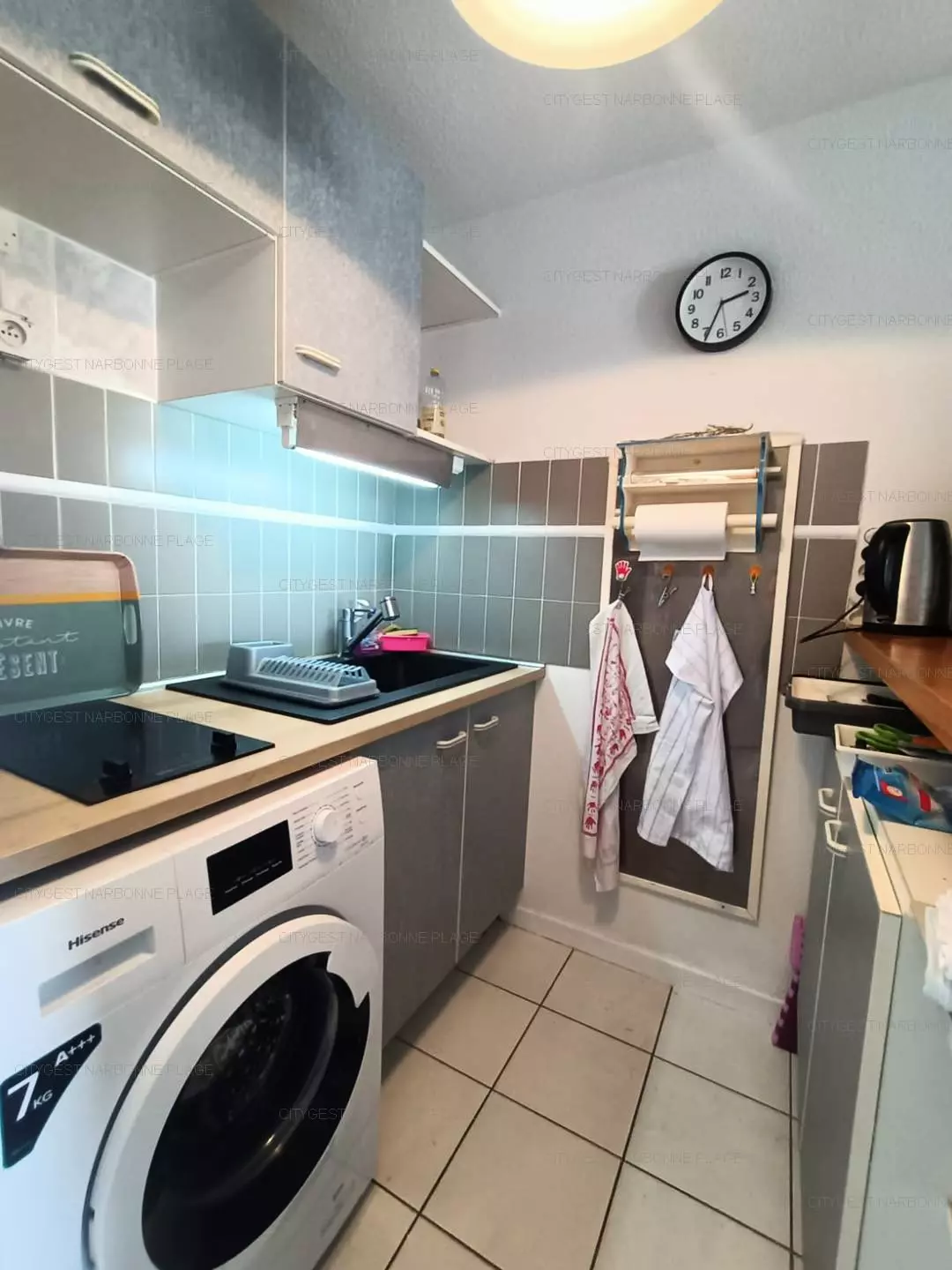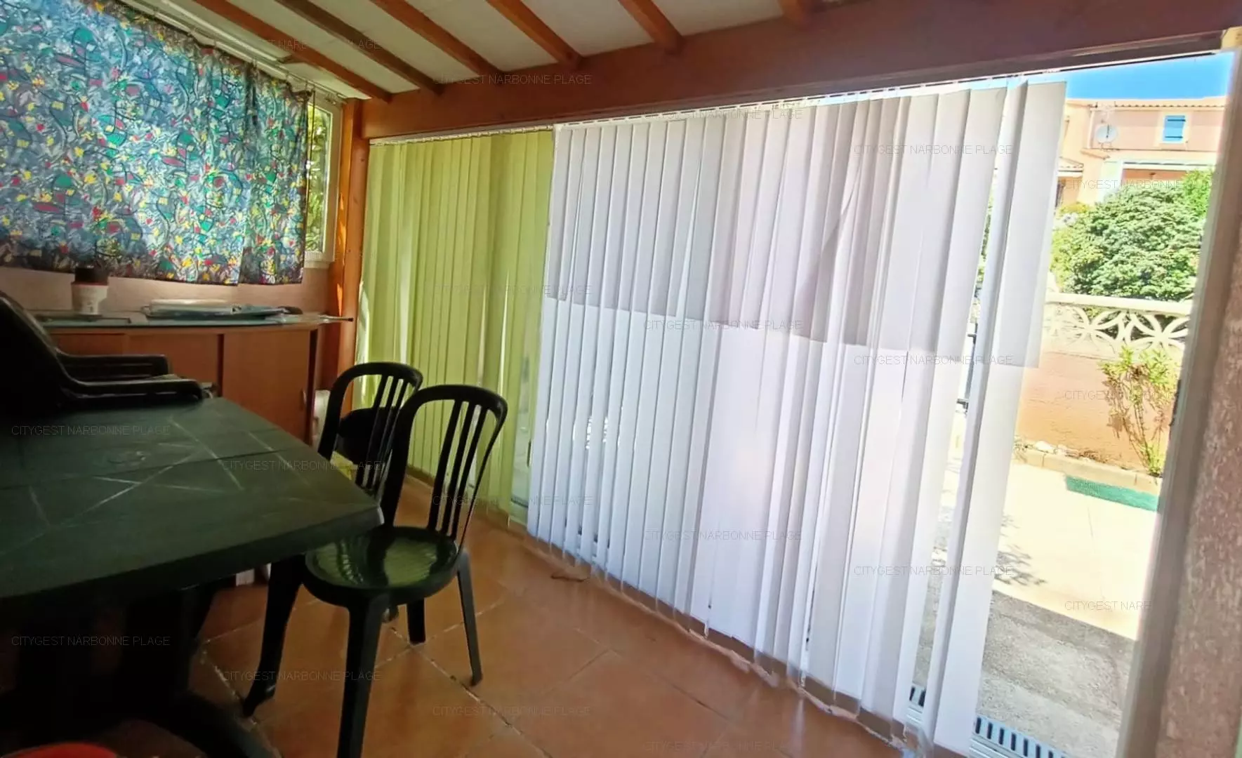 Family house consisting of a courtyard at the front and a veranda, a kitchen area equipped with a washing machine, fridge-freezer, filter coffee maker, kettle and microwave, serving the main room with living room, sofa bed, television.
