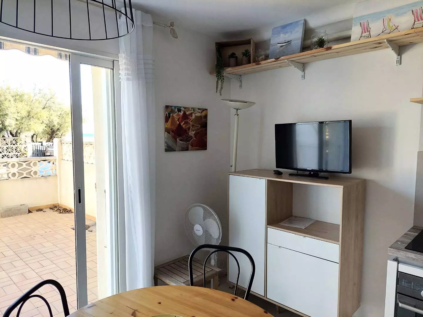It has a living room-kitchen opening onto a large terrace, two bedrooms, a shower room and a separate toilet.