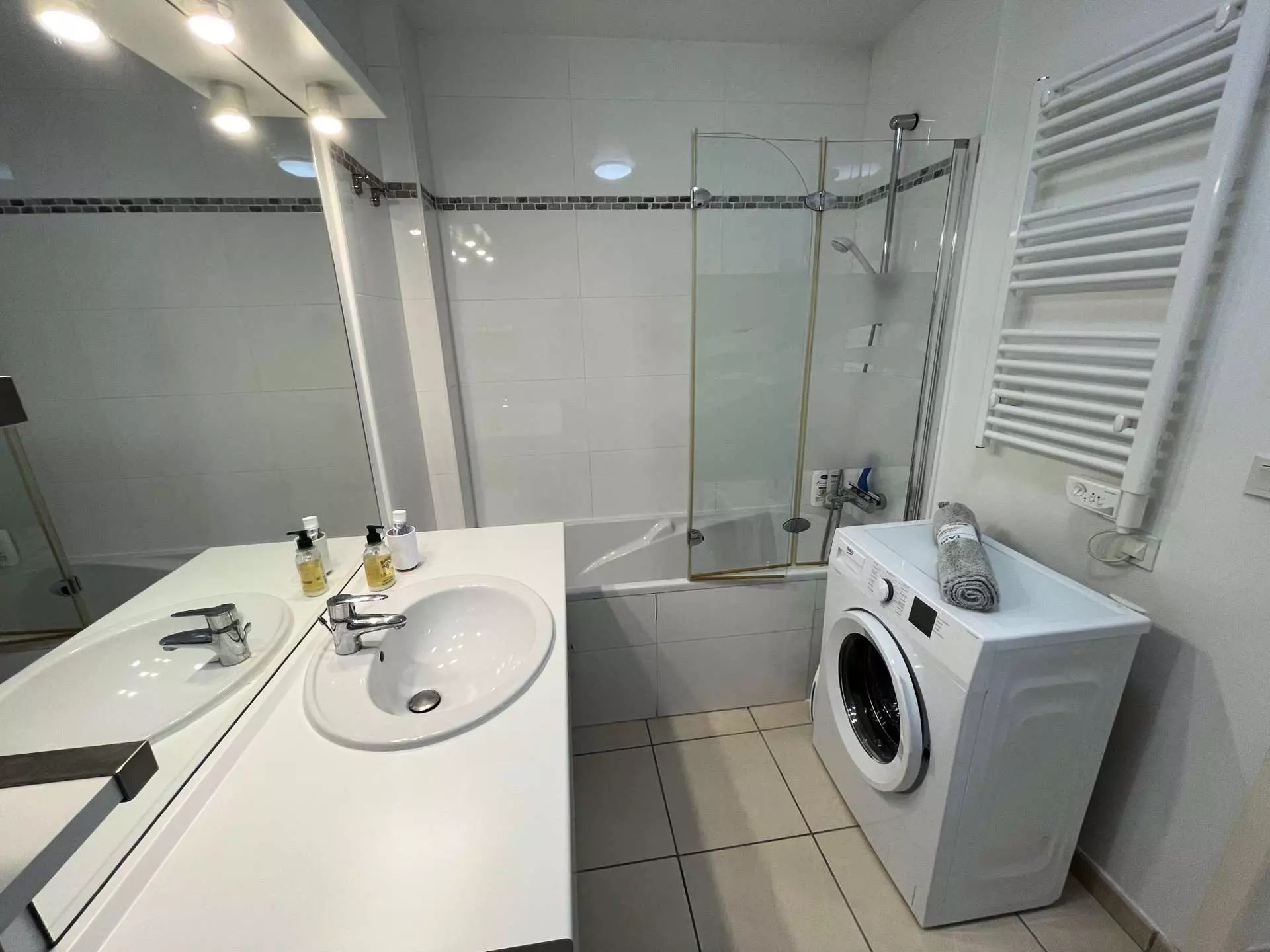 -TV, air conditioning, Wifi, dishwasher, washing machine, refrigerator and freezer, 2 electric induction hobs, oven, microwave, filter coffee maker, toaster, kettle,