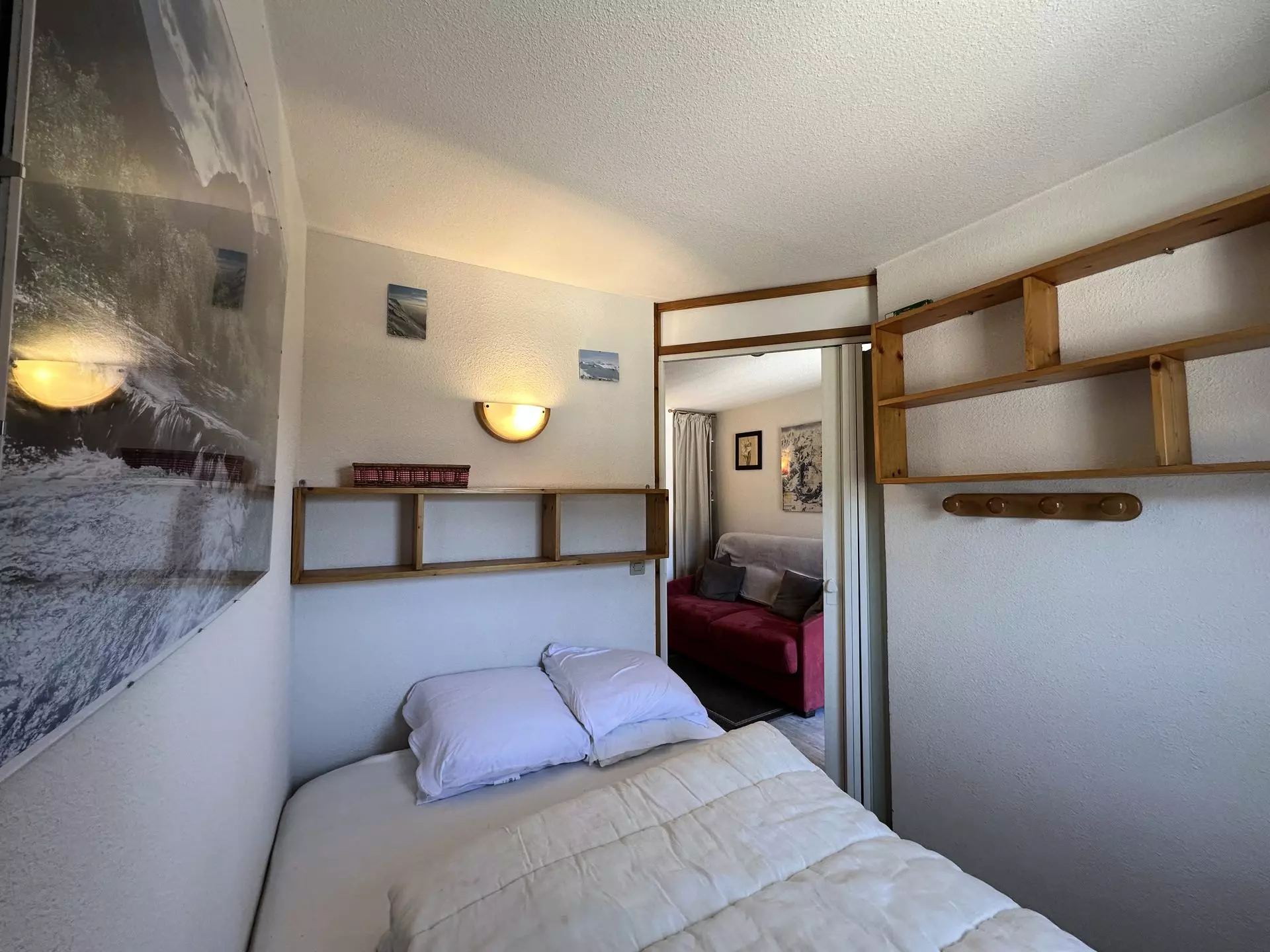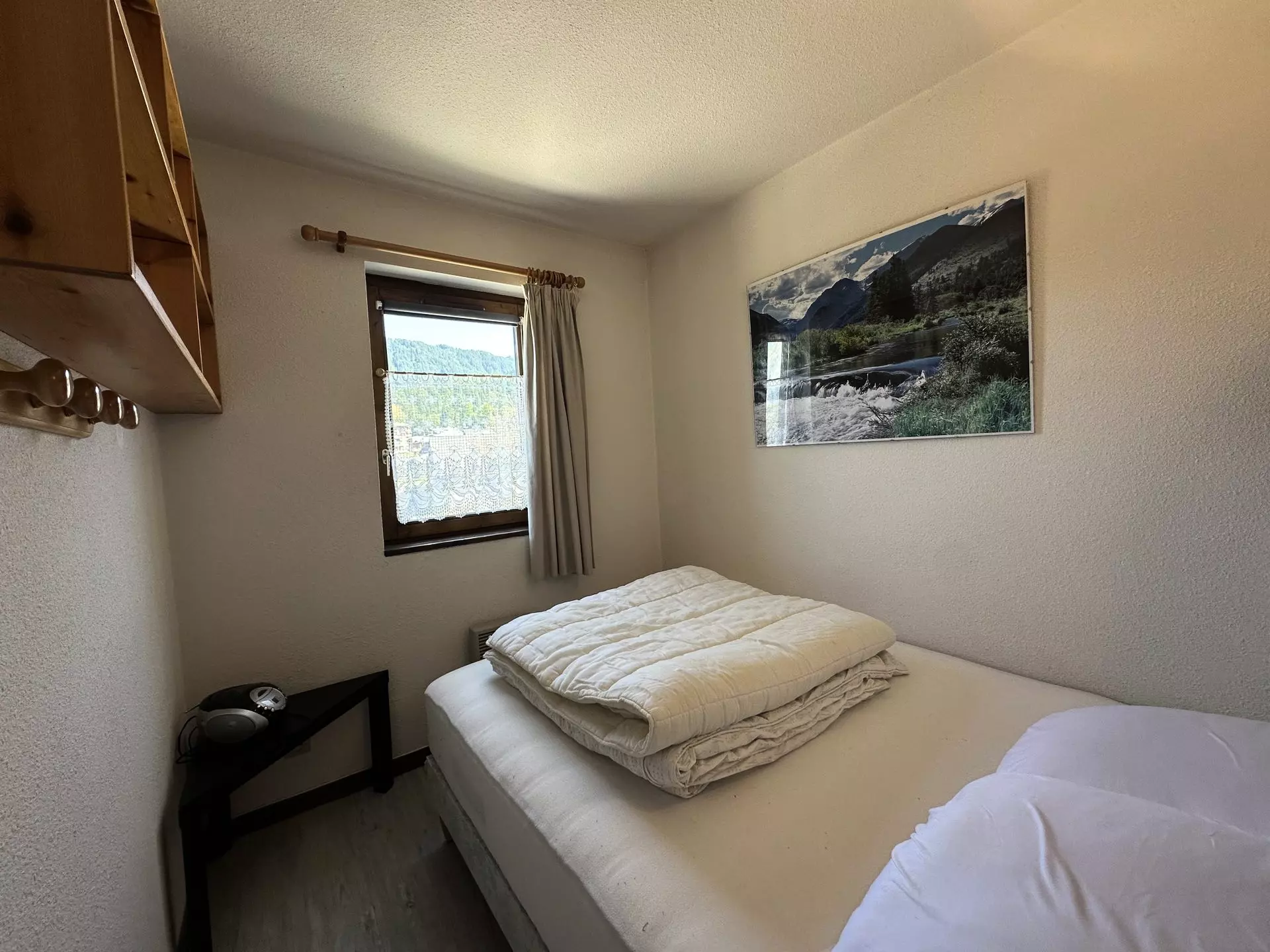 Upon entering, you will find a bathroom and toilet as well as a mountain corner. The living room is equipped with a rapido convertible sofa and a television for your moments of relaxation. The apartment also has a small bedroom separated by a sliding door. Enjoy the east-facing balcony to admire the view.