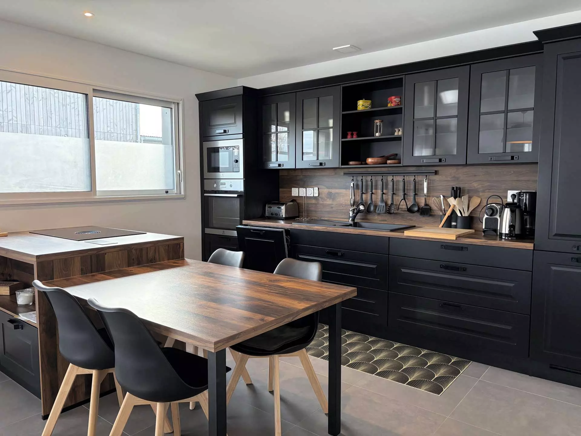 Induction hob, fridge-freezer, oven, microwave, dishwasher, washing machine, coffee maker and pod coffee maker, kettle, toaster. Large sofa, smart TV. Two 160x200 cm beds. Pillows and duvet for the beds. Terrace with garden furniture, parasol, Weber barbecue.