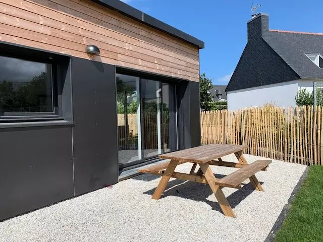 Daviken, a 3-star holiday home for 4 people, is located in Trébeurden, close to beaches and hiking trails. Its 81 m² interior includes a living room/TV area, an open-plan kitchen with a dining area, a pantry, two bedrooms, and a bathroom with a walk-in shower and toilet. Linens are optional, the accommodation is non-smoking, pets are allowed (maximum 2), and final cleaning is included.