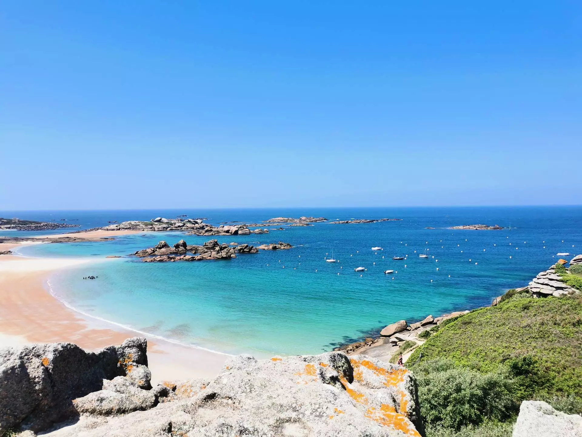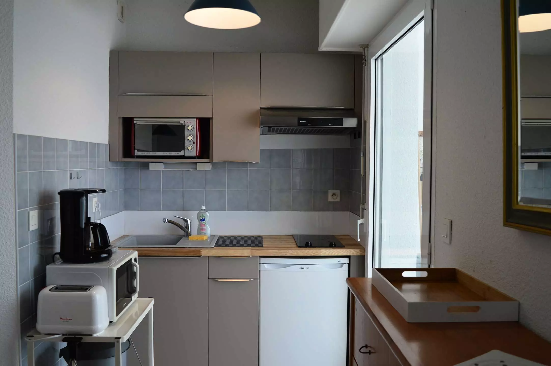 Residence des Sept îles in Trégastel, apartment with magnificent sea view and direct access to the Grève Blanche beach. 3-star rental rated for its comfort, 35 m² furnished for 2 to 4 people, including a living room with access to the terrace and veranda with sea view, kitchenette, dining table and TV lounge, Wi-Fi connection, bedroom with sea view and access to the terrace, bathroom with sink and shower, WC. One private parking space. Linen optional. Small dog accepted. Non-smoking accommodation. Final cleaning included.